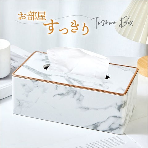 ティッシュケース 大理石風【ホワイト】
