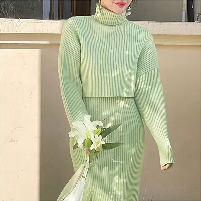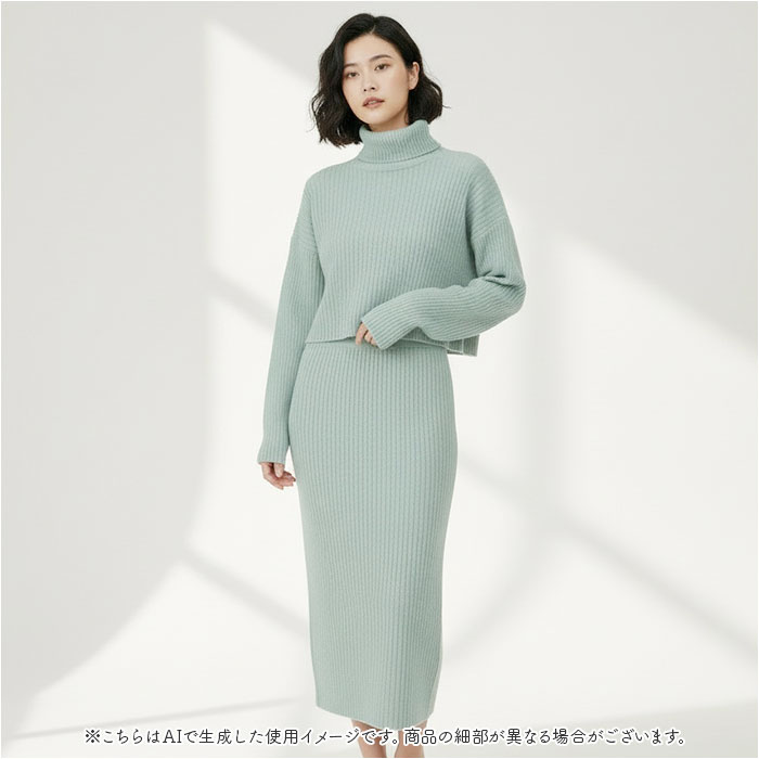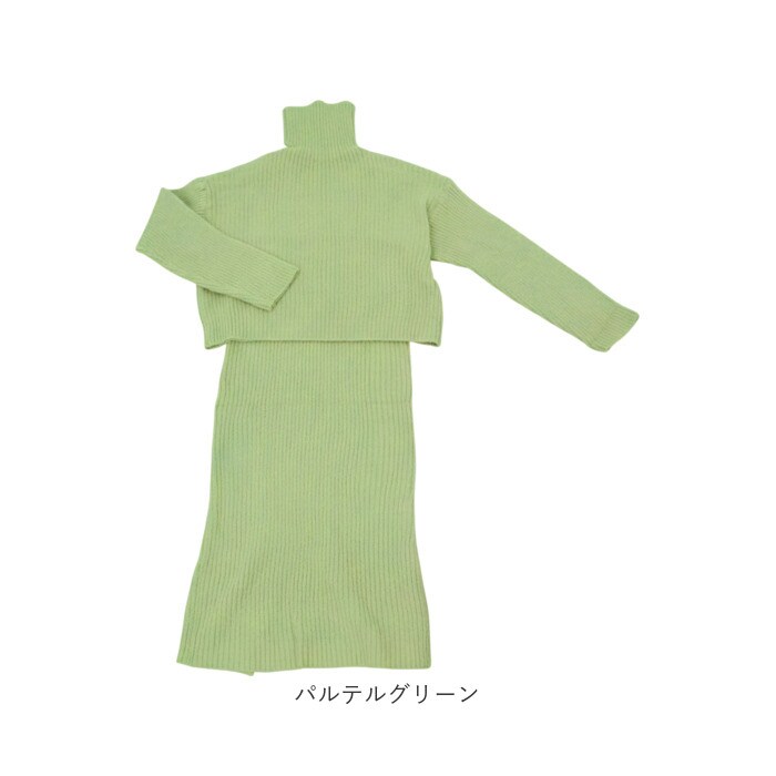 タートルネックトップス ニットワンピース セットアップ【パルテルグリーン】