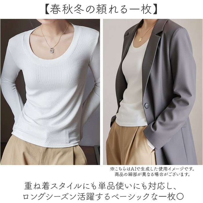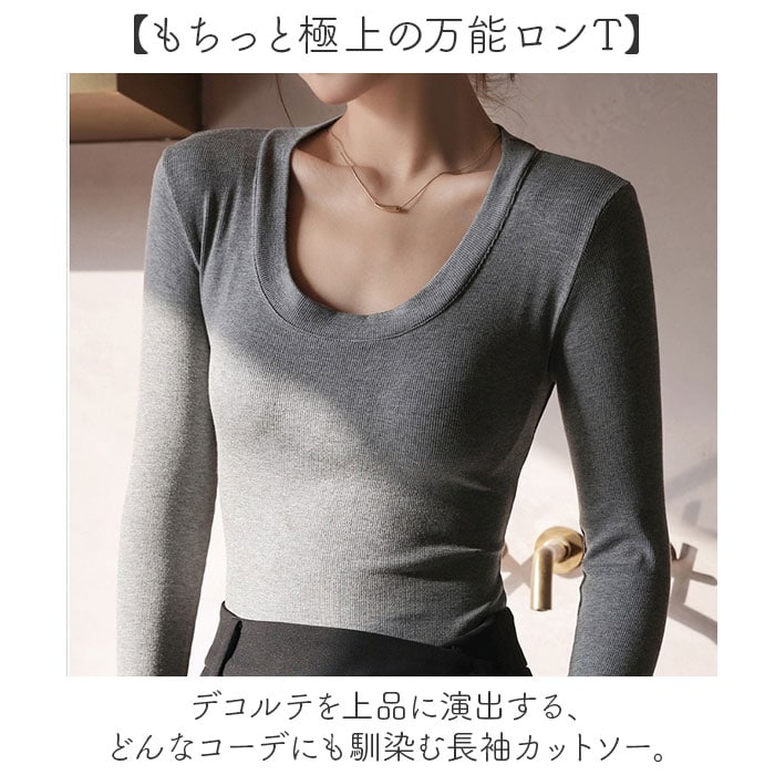 | 商品説明 | 【もちっと極上の万能ロンT】デコルテを上品に演出する、どんなコーデにも馴染む長袖カットソー。【Uネックの着回し力】デコルテラインを美しく引き立てるUネックで、アクセサリーとの相性も抜群◎【体のラインが映えるシルエット】ほどよいフィット感がボディラインをすっきり見せ、スタイルアップも叶う一枚!【やさしい着心地】ビスコース×スパンデックスのなめらかな肌触りで、一度着たら手放せない心地よさ。【春秋冬の頼れる一枚】重ね着スタイルにも単品使いにも対応し、ロングシーズン活躍するベーシックな一枚〇【豊富なカラー展開】毎日のコーデに取り入れやすいベーシックカラーで、スタイリングの幅がぐっと広がる♪ |