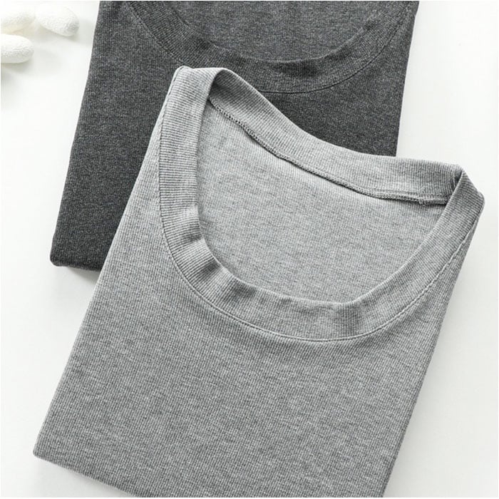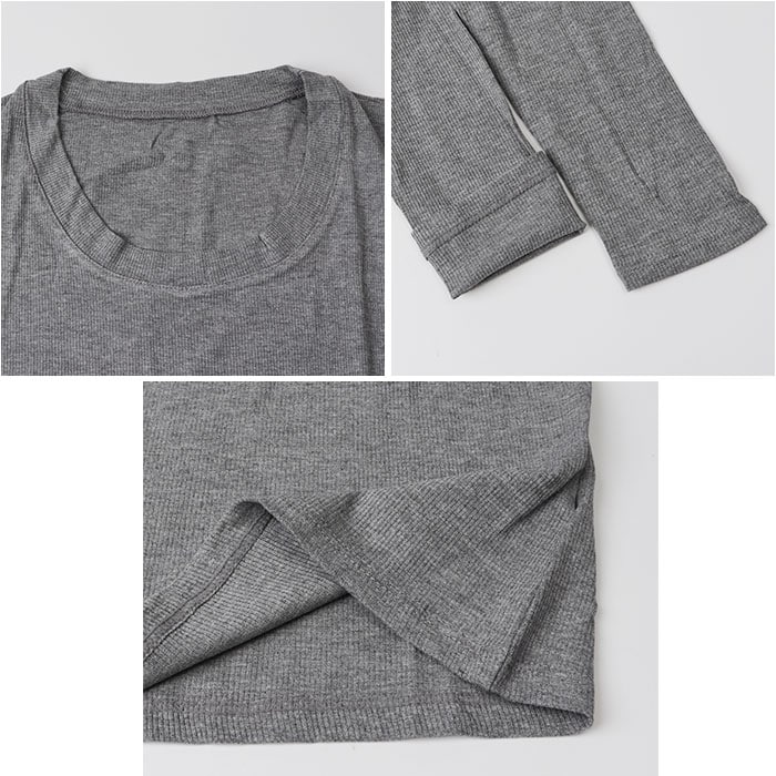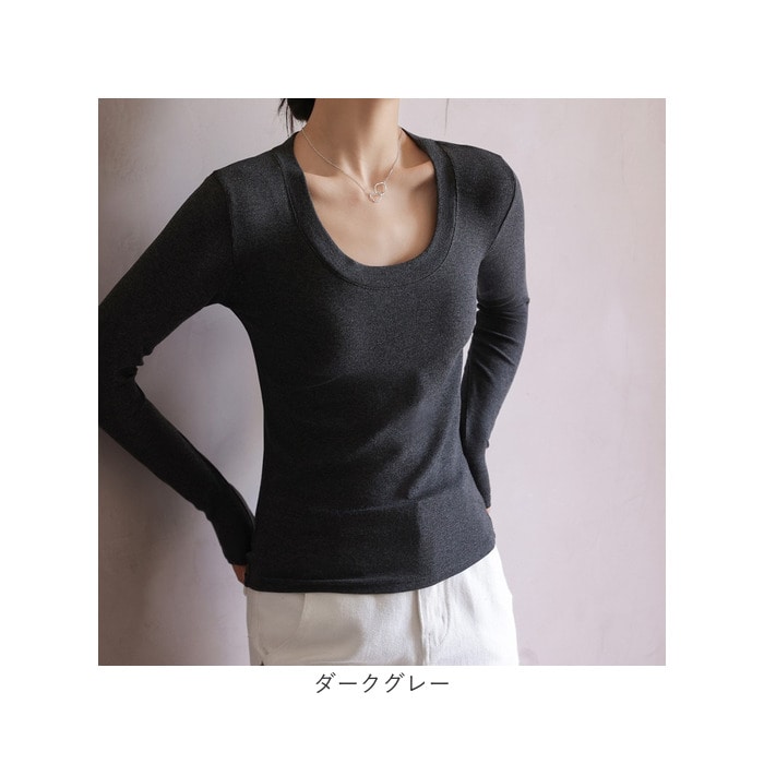 カットソー 長袖 Uネック【ダークグレー】【XLサイズ】