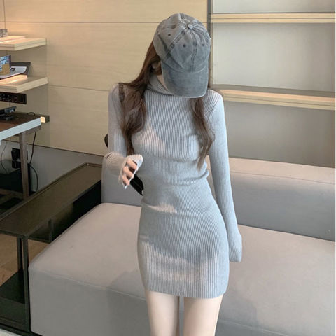 ニットワンピース タートルネック 【グレー】