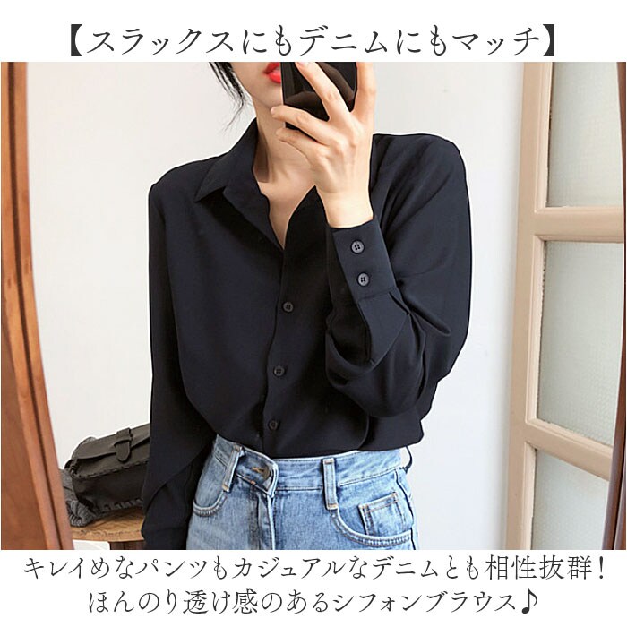 | 商品説明 | 【オフィスカジュアルスタイルに最適】落ち着きのある上品な雰囲気を演出。シンプルで着回しやすい「長袖ブラウス」。【合わせやすいベーシックデザイン】無駄な装飾を省いた、スタンダードなカタチ。襟付きできちんと感もプラス。【ロングシーズン、さらりと快適】薄手の軽やかな生地感で、季節を選ばない!春夏は襟元のボタンを開けてもおしゃれ♪【アレンジも楽しめる万能アイテム】そのまま1枚で着るもよし。ニットなどの下に仕込んで、レイヤードコーデも自在◎【スラックスにもデニムにもマッチ】キレイめなパンツもカジュアルなデニムとも相性抜群!ほんのり透け感のあるシフォンブラウス♪ |
