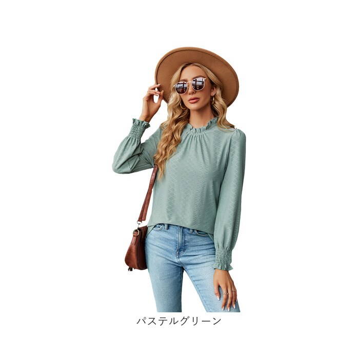 トップス 長袖 立ち襟 mmtops727a【パステルグリーン】【Lサイズ】