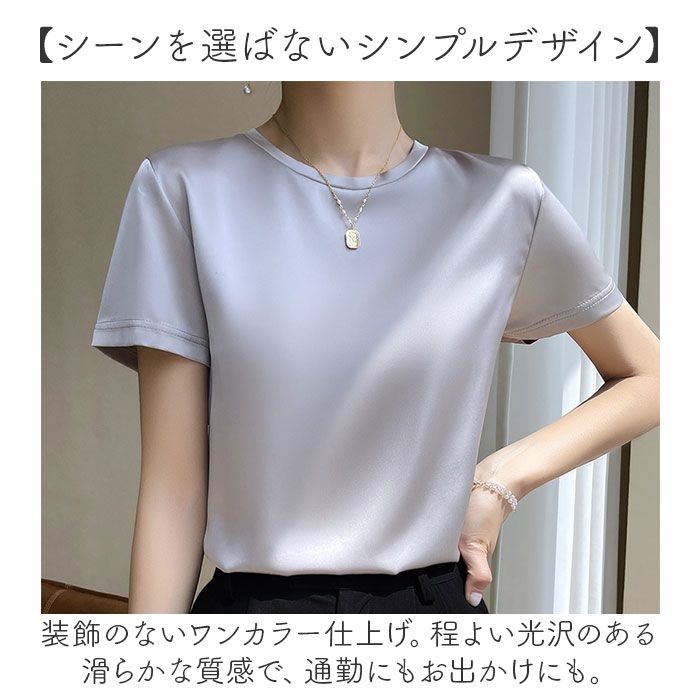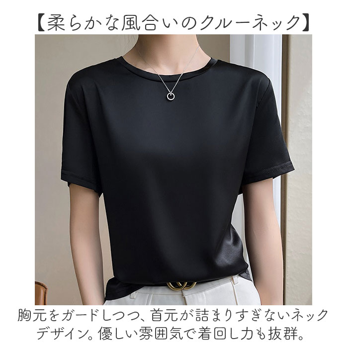 | 商品説明 | 【スタイリッシュにキマる1枚】大人なスタイルを楽しめて、トレンドにも左右されない!上品なトップス。【柔らかな風合いのクルーネック】胸元をガードしつつ、首元が詰まりすぎないネックデザイン。優しい雰囲気で着回し力も抜群。【すっきりとしたシルエットを演出】ダボッとせず、締め付けもなし。ボディラインにスッと馴染み、ボトムスインもアウトも自在◎【シーンを選ばないシンプルデザイン】装飾のないワンカラー仕上げ。程よい光沢のある滑らかな質感で、通勤にもお出かけにも。 |