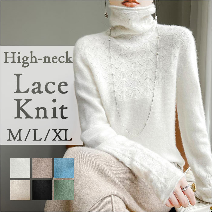 | 商品名 | ニットセーター ハイネック トップス 首元レース |