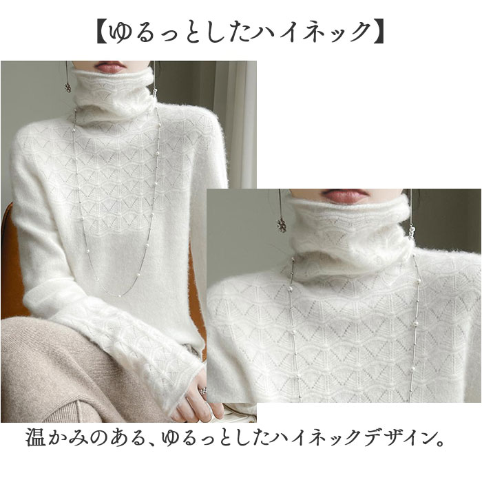 | 商品説明 | 【上品レースニットの温かさ】上品なレース模様とゆるっとしたデザインで、秋冬の女性らしさを引き立てるアイテム。【拘りのレースニット】首元、袖に控えめな凹凸感のレースニットで、上品な仕上がり。【ゆるっとしたハイネック】温かみのあるゆるっとしたハイネックデザイン。【シンプルで女性らしい】シンプルでありながら、女性らしさを引き立てる。【新鮮なスタイル】いつものボトムスが新鮮に映えるアイテム。 |