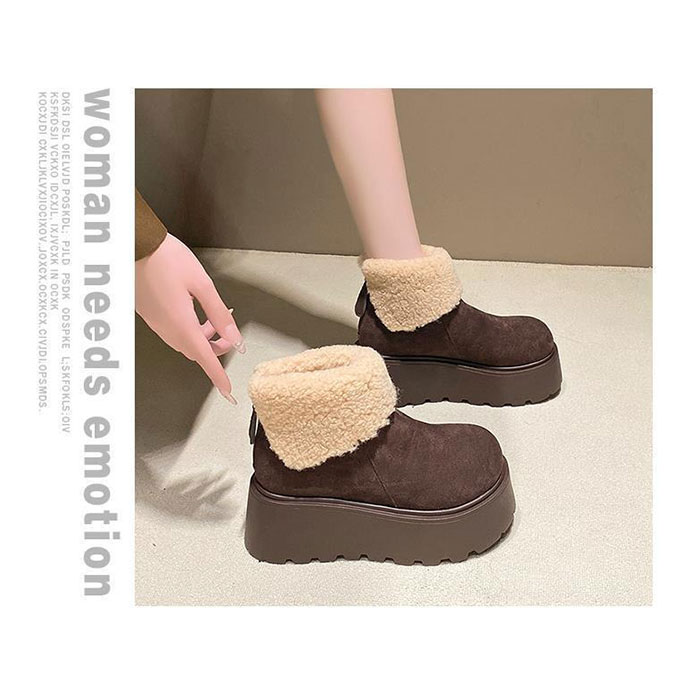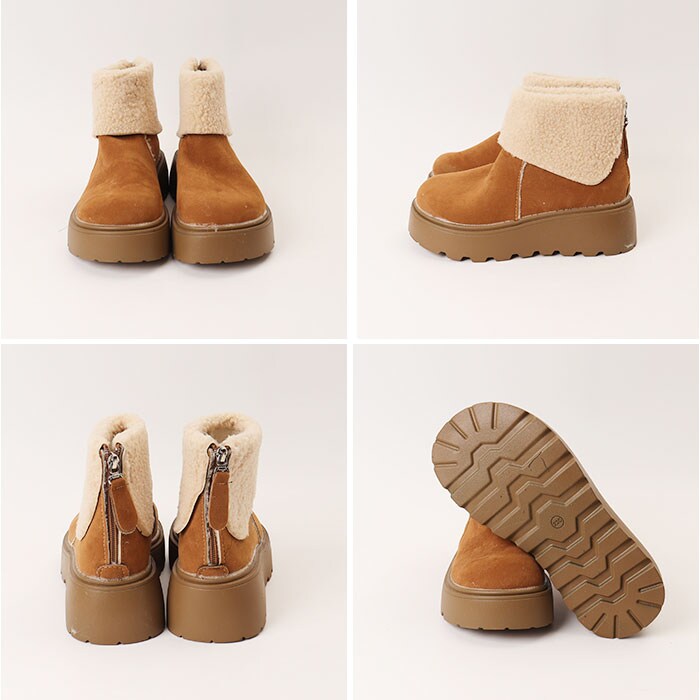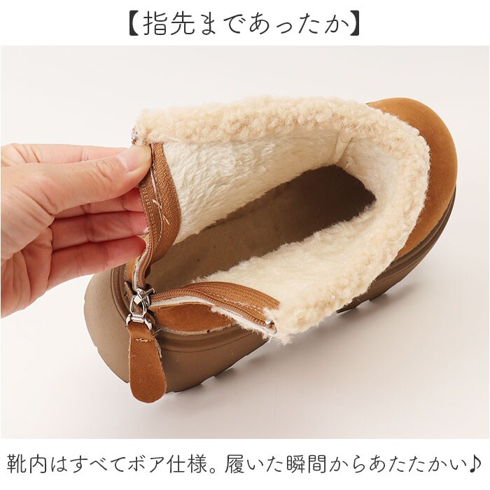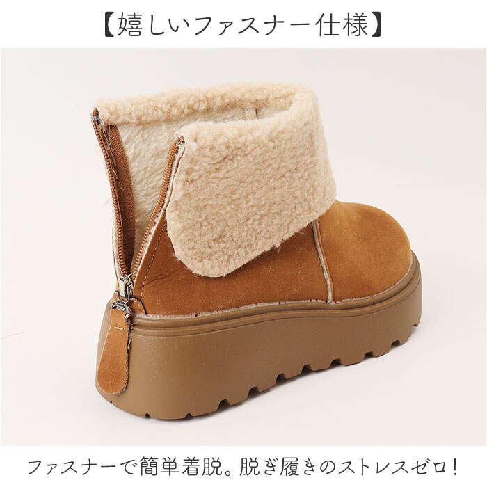| 商品説明 | 【秋冬コーデの定番】コロンとした愛らしいフォルムが可愛い♪厚底ショートブーツ。【厚底7cmで叶う美脚】ボリューム感のあるソールがさりげなくスタイルアップを叶え、すらっとした美脚ラインを演出。【指先まであったか】靴内はすべてボア仕様。履いた瞬間からあたたかい♪【嬉しいファスナー仕様】ファスナーで簡単着脱。脱ぎ履きのストレスゼロ!【雨の日も安心】凹凸のある滑りにくいソールだから、天候を気にせず履けて心強い。 |
