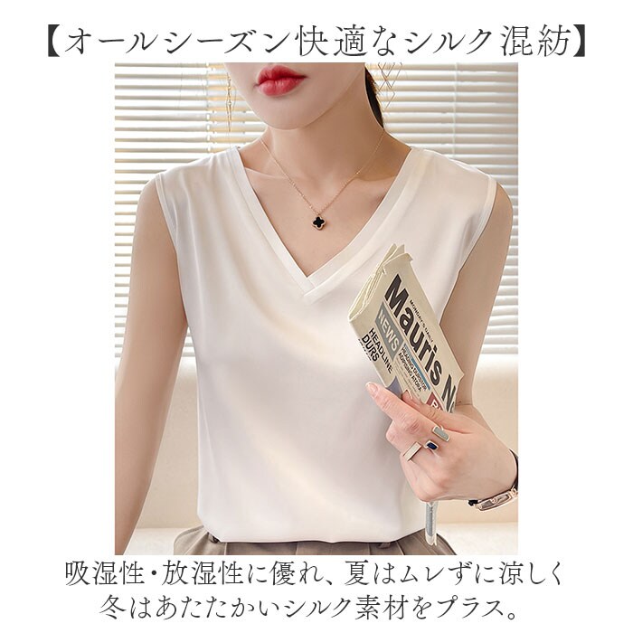 | 商品説明 | 【サラッと使える大人のインナー】シンプルながら、リッチな印象に♪「Vネック タンクトップ」が新登場。【オールシーズン快適なシルク混紡】吸湿性・放湿性に優れ、夏はムレずに涼しく冬はあたたかいシルク素材をプラス。【お肌に優しくチクチク感ゼロ】摩擦が少なく、滑らかな肌触りが特徴。素肌に触れてもノンストレス◎【エレガントにキマる光沢感】薄手の生地感で着心地軽やか。上質な光沢があり、落ち着きのある雰囲気に。【ヘルシーな肌魅せが叶うVネック】胸元が程よく開いた、Vラインシルエット。華奢なアクセサリーも映える♪【無地カラーで着回し力抜群】どんなアイテムとも相性が良く、色違いで揃えるのもおすすめ。 |