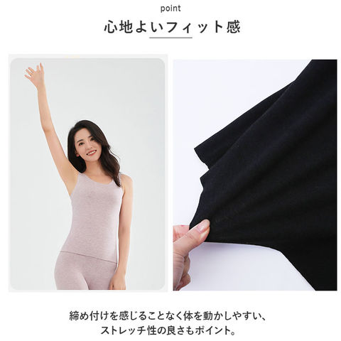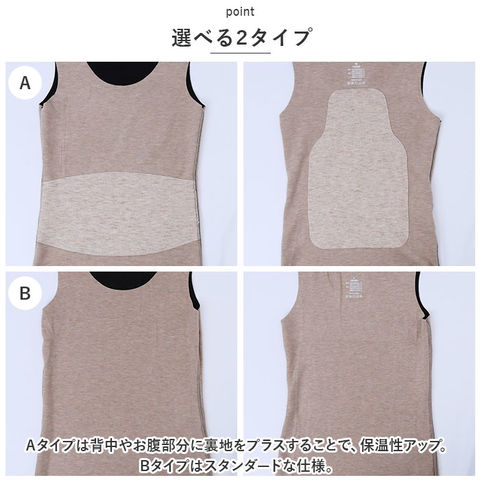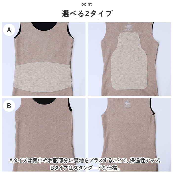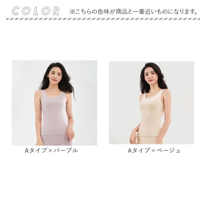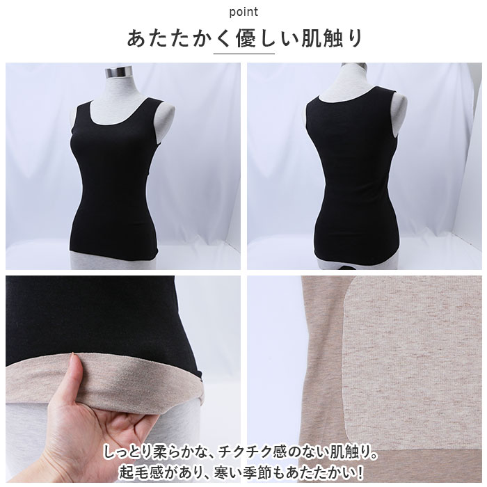 | 商品説明 | ストレスフリーな着心地♪使い勝手ばっちりなタンクトップインナーが新登場。【あたたかく優しい肌触り】しっとり柔らかな、チクチク感のない肌触り。起毛感があり、寒い季節もあたたかい!【心地よいフィット感】締め付けを感じることなく体を動かしやすい、ストレッチ性の良さもポイント。【クルーネックタイプ】デコルテをすっきり見せつつ、優しげな印象を与えるネックデザイン。華奢なネックレスも美しく映える♪【着回し力抜群のタンクトップ】透け感のあるトップスに忍ばせたり、上からシャツなどを羽織ってもOK。【選べる2タイプ】Aタイプは背中やお腹部分に裏地をプラスすることで、保温性アップ。Bタイプはスタンダードな仕様。【着こなしやすいカラー展開】他のアイテムと合わせやすい、落ち着きのあるカラーをラインナップ。洗い替え用に、色違いで揃えるのもおすすめ。 |