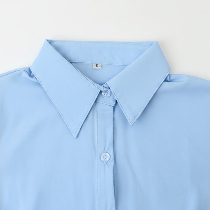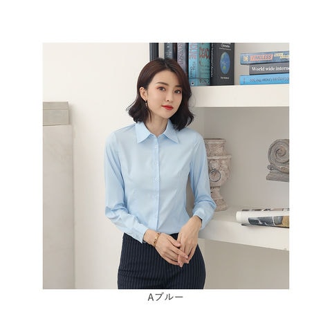 シャツブラウス トップス 長袖オフィス【Aブルー】【Sサイズ】