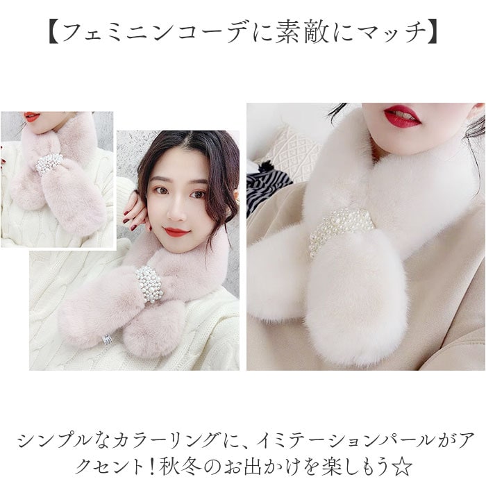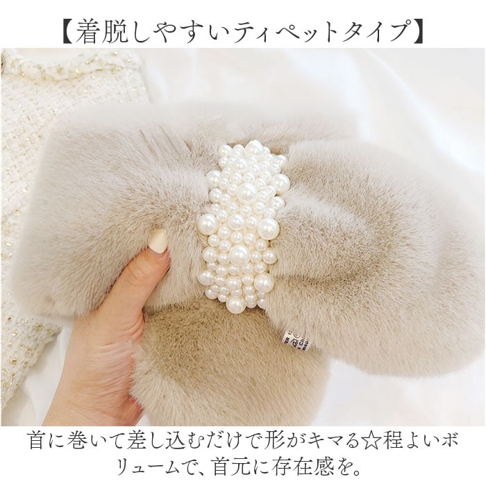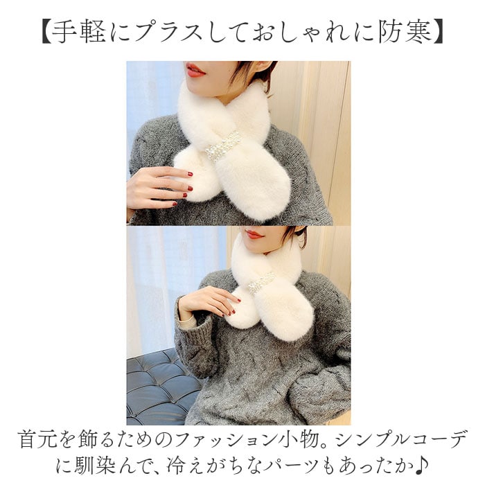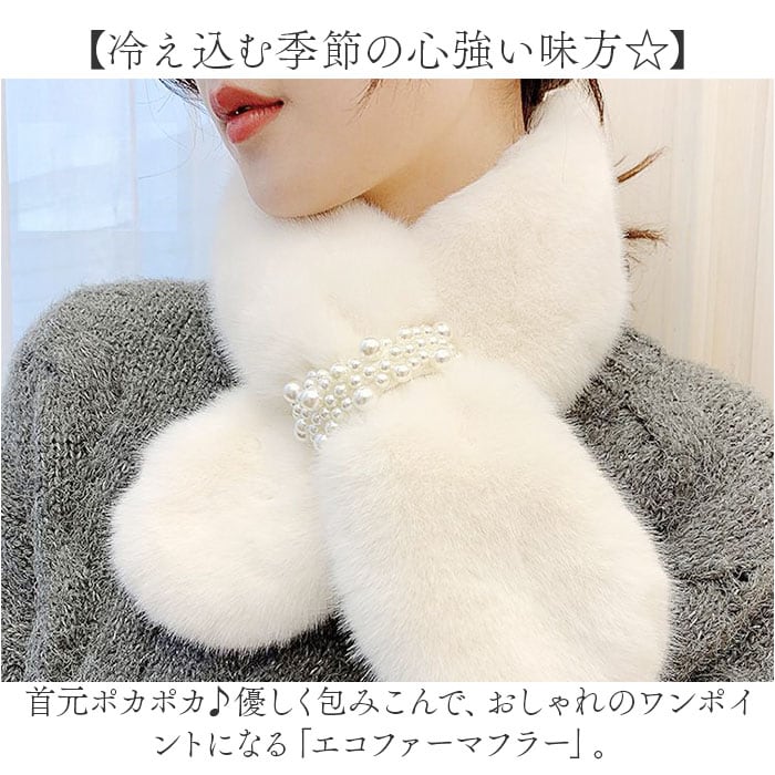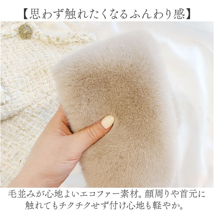 | 商品説明 | 【冷え込む季節の心強い味方☆】首元ポカポカ♪優しく包みこんで、おしゃれのワンポイントになる「エコファーマフラー」。【手軽にプラスしておしゃれに防寒】首元を飾るためのファッション小物。シンプルコーデに馴染んで、冷えがちなパーツもあったか♪【着脱しやすいティペットタイプ】首に巻いて差し込むだけで形がキマる☆程よいボリュームで、首元に存在感を。【思わず触れたくなるふんわり感】毛並みが心地よいエコファー素材。顔周りや首元に触れてもチクチクせず付け心地も軽やか。【かざばりにくく持ち運びに便利】折りたたんでもマフラーほど荷物にならず、持ち歩きに困らないのも嬉しいポイント。【フェミニンコーデに素敵にマッチ】シンプルなカラーリングに、イミテーションパールがアクセント!秋冬のお出かけを楽しもう☆ |
