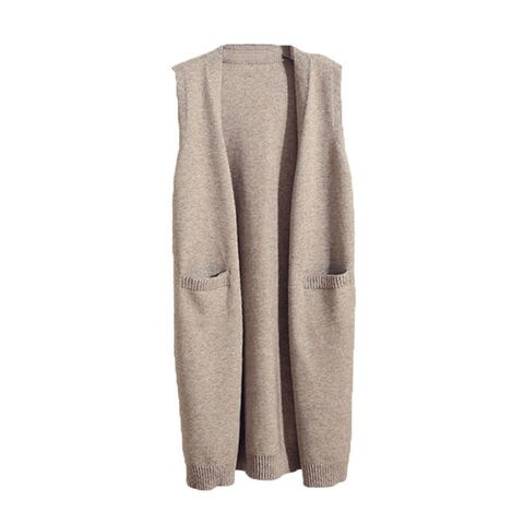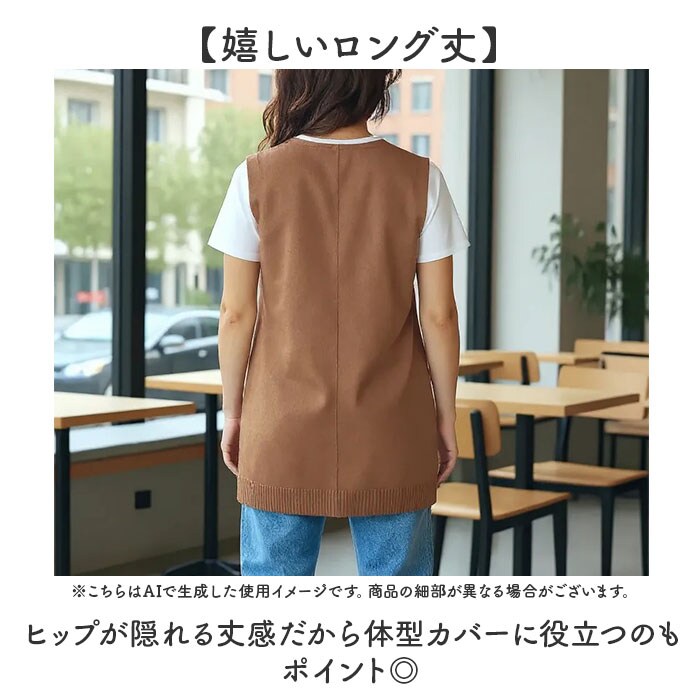 ニットベスト ジレ ロング丈【キャメル】