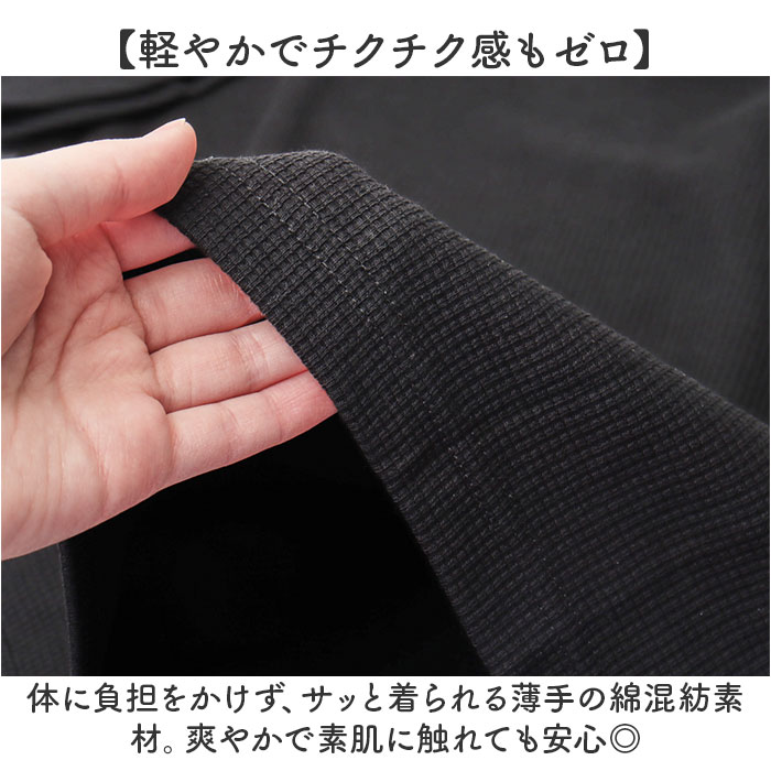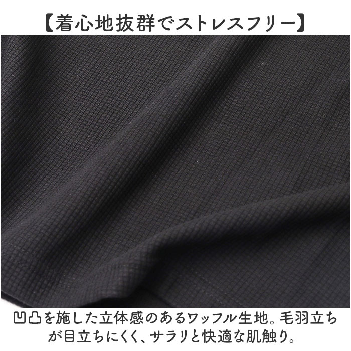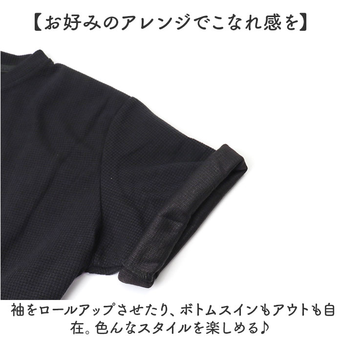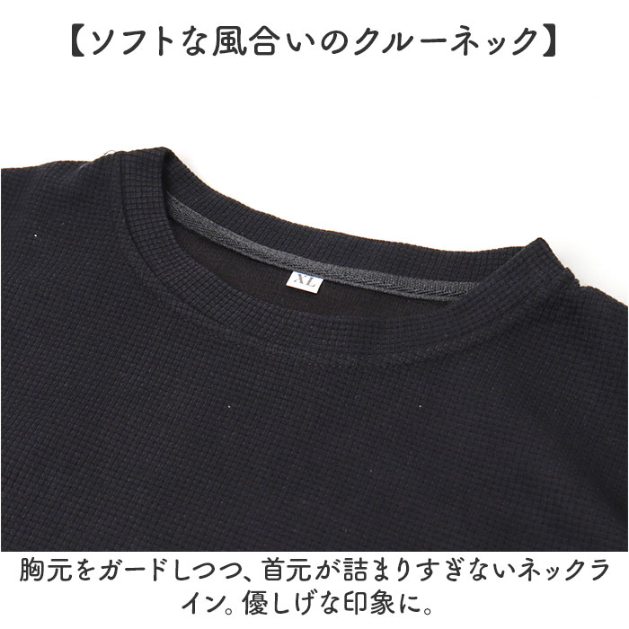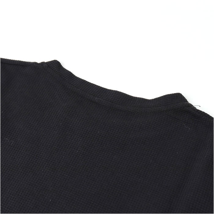 ワッフルカットソー クルーネック トップス【ブラック】【Mサイズ】