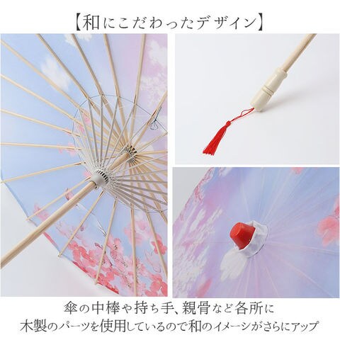 | 商品説明 | 【和の演出を楽しむ】和装での写真撮影にピッタリな和傘が登場。【写真を華やかに】七五三や成人式、コスプレなど着物の写真を華やかに演出してくれるアイテム。【丈夫で破れにくい】和傘定番の紙張りではなく布張りにすることで、破れにくくしなやかな印象に。【和にこだわったデザイン】傘の中棒や持ち手、親骨など各所に木製のパーツを使用しているので和のイメーシがさらにアップ【さまざまなシーンで活躍】日本舞踊のお稽古や劇の小道具、和室のインテリアなど幅広く活用できる上品で華やかな和傘。 |