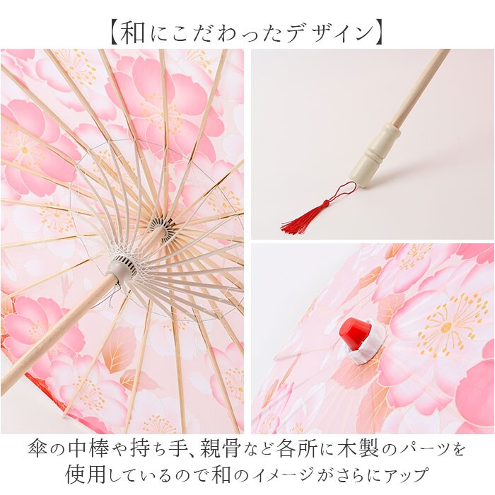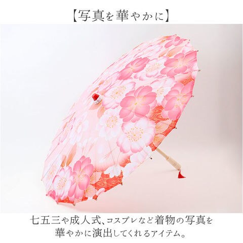 | 商品説明 | 【和の演出を楽しむ】和装での写真撮影にピッタリな和傘が登場。【写真を華やかに】七五三や成人式、コスプレなど着物の写真を華やかに演出してくれるアイテム。【丈夫で破れにくい】和傘定番の紙張りではなく布張りにすることで、破れにくくしなやかな印象に。【和にこだわったデザイン】傘の中棒や持ち手、親骨など各所に木製のパーツを使用しているので和のイメージがさらにアップ【さまざまなシーンで活躍】日本舞踊のお稽古や劇の小道具、和室のインテリアなど幅広く活用できる上品で華やかな和傘。 |