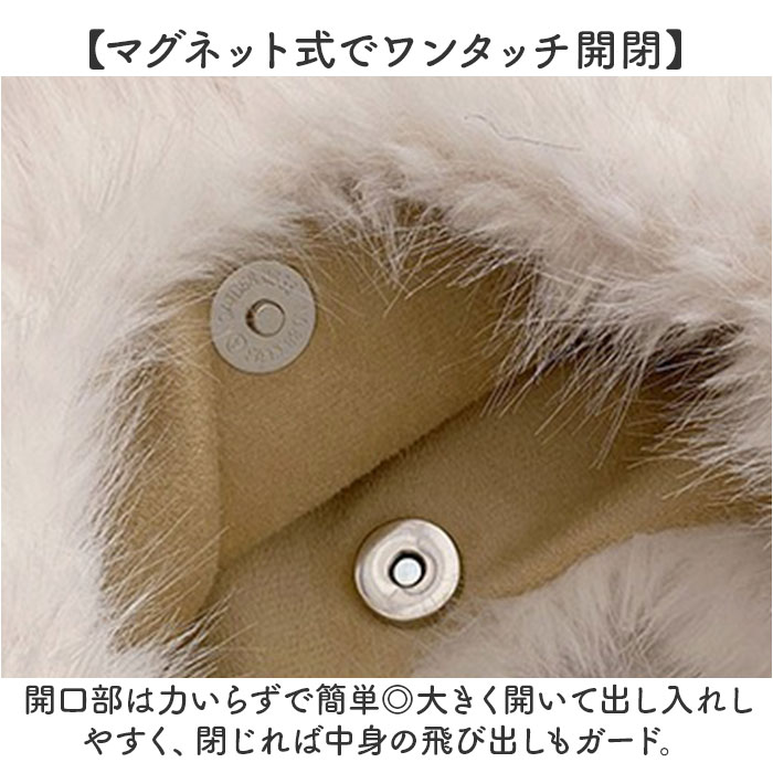 | 商品説明 | 【秋冬コーデにおしゃれなアクセント】大人女子のスタイリングにプラス♪甘くなりすぎない「フェイクファーバッグ」。【乙女心をくすぐるふわふわ質感】ふんわり柔らかなフェイクファー仕上げ。くしゅっとフェイクレザーのハンドルもポイント☆【手持ちも肩掛けもお好みで】サッと手に取りやすく、腕や肩に掛けることも可能。お出かけのお供にぴったり。【マグネット式でワンタッチ開閉】開口部は力いらずで簡単◎大きく開いて出し入れしやすく、閉じれば中身の飛び出しもガード。【マストアイテムをひとまとめ】ドリンクボトルやコスメポーチなど、お出かけに必要なアイテムをざっくりIN。【すっきりまとまるワントーン】程よいボリュームで存在感を出しつつ、色んなコーデに合わせやすいワンカラーのバッグ♪ |