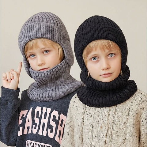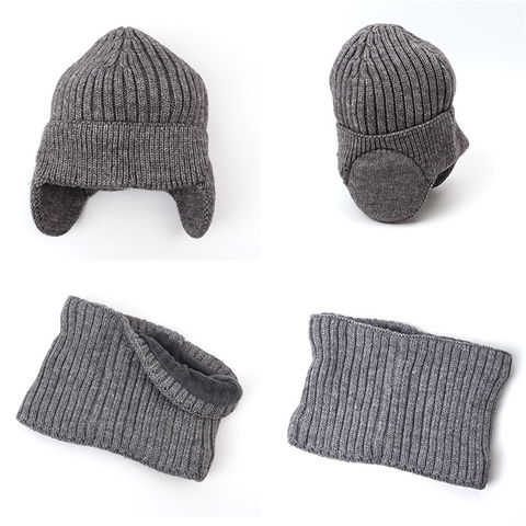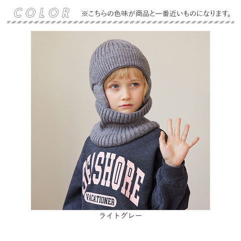 ネックウォーマー 耳当て付きニット帽 2点セット キッズ【ライトグレー】