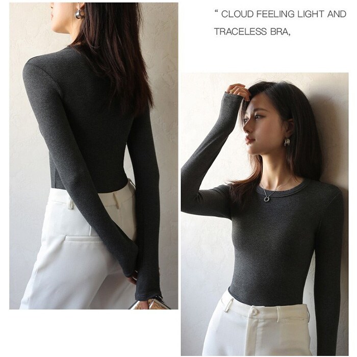 カットソー トップス 長袖 オールシーズン【ダークグレー】【Lサイズ】