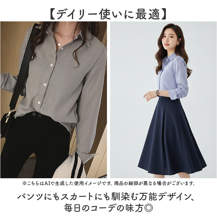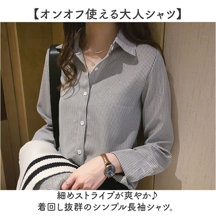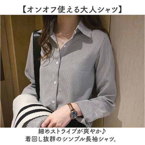 | 商品説明 | 【オンオフ使える大人シャツ】細めストライプが爽やか♪着回し抜群のシンプル長袖シャツ。【デイリー使いに最適】パンツにもスカートにも馴染む万能デザイン、毎日のコーデの味方◎【すっきり見え】縦ストライプですらりとした着こなしが楽しめるデザイン〇【レイヤードも自在】一枚ではもちろん、アウターのインナーとしても使えて重ね着も楽しめる!【季節を問わず活躍】薄手でサラリとした肌触り、長く愛用できる優秀アイテム。 |
