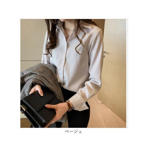 ストライプシャツ トップス【ベージュ】【Mサイズ】