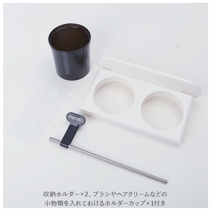 | サイズ | 【ハンガーあり・なし共通】 ・本体 [縦]約6cm/[横]約22cm/[奥行]約12cm ・収納穴 [直径]約8cm ・収納カップ [縦]約9cm/[上部直径]約8cm/[底部直径]約7cm 【ハンガーなし】 [縦]約2cm/[横]約22cm/[奥行]約7cm【ハンガーあり・なし共通】 ・本体 [縦]約6cm/[横]約22cm/[奥行]約12cm ・収納穴 [直径]約8cm ・収納カップ [縦]約9cm/[上部直径]約8cm/[底部直径]約7cm 【ハンガーなし】 [縦]約2cm/[横]約22cm/[奥行]約7cm |