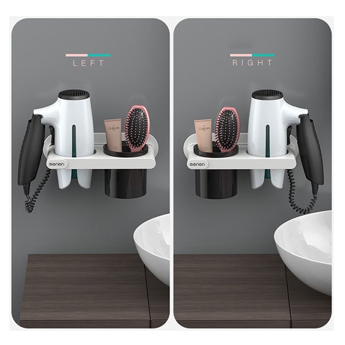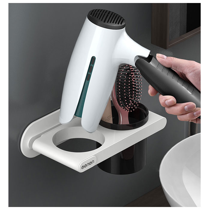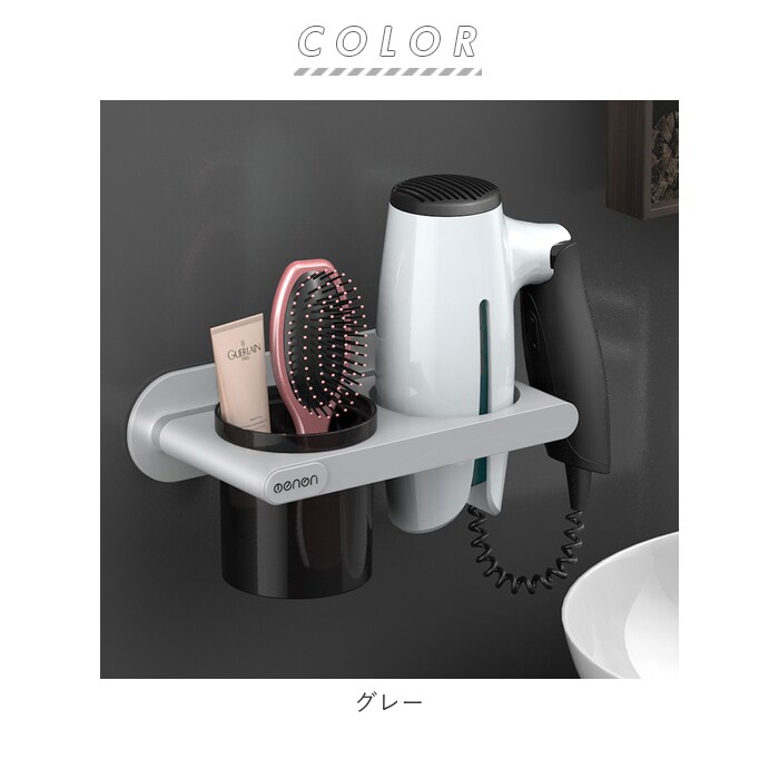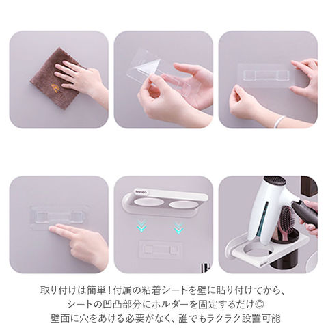 | 商品説明 | ドライヤーの置き場所や収納に困らない!壁掛けタイプのドライヤー収納ホルダーが発売。取り付けは簡単!付属の粘着シートを壁に貼り付けてから、シートの凹凸部分にホルダーを固定するだけ◎壁面に穴をあける必要がなく、誰でもラクラク設置可能。収納ホルダーを2つ装備しており、直径約7.5cm以内のドライヤーに対応。ブラシやヘアクリームなどの小物類を入れておけるホルダーカップ×1付き。ホルダー背面に電源プラグを固定したり、コードを巻き付けてスッキリ収納できるのが嬉しい♪ドライヤーをホルダーにセットし、ハンズフリーでヘアドライもできちゃう◎タオルなどを掛けておけるハンガー付きとハンガーなしの2タイプ。どんなサニタリースペースにもマッチする、シンプルなデザイン。 |