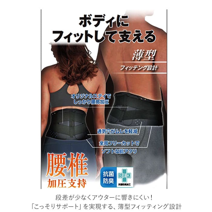 | 商品説明 | ボディラインにフィットして支える!「スタイリーズ/ユナイター」腰サポートベルトが発売。(男女兼用タイプ)段差が少なくアウターに響きにくい!「こっそりサポート」を実現する、薄型フィッティング設計。(※お肌が敏感な方は、肌着の上からの装着をおすすめします。)独自設計の幅広ステイが、腰部を広範囲にサポート。ベルトには通気穴があり、ムレを軽減!さらに抗菌防臭加工が施されているから、汗をかいても快適な付け心地。ベルト全周は肌あたりの優しいフリーカット構造。長時間の装着によるお腹や脇腹へのストレスを軽減。ご自宅で手洗いが可能だからお手入れがラクラク。 |