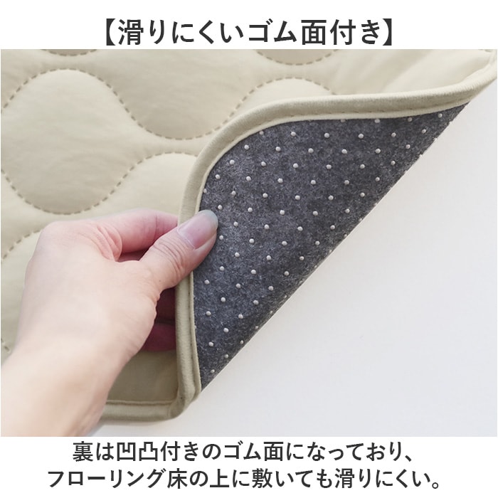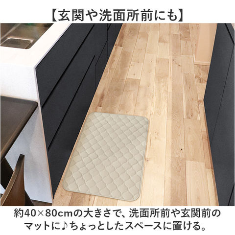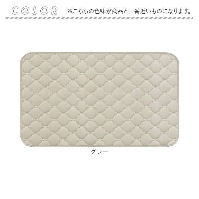 | 商品説明 | 【触れる度にひんやり心地良い♪】足元をひんやり涼しく♪夏にピッタリな接触冷感機能付きのインテリアマット 48×80cm【夏に嬉しい接触冷感機能】表面に接触冷感機能がある生地を採用。素肌が触れる度にひんやり心地良い♪※1【接触冷感の仕組み】接触冷感素材は熱伝導率が高く、肌から生地へ熱が瞬時に移動することで冷たく感じられる。【もっちりとした踏み心地】中綿入りのキルティング仕様で足が痛くなりにくいもっちりとした踏み心地もポイント。【玄関や洗面所前にも】約40×80cmの大きさで、洗面所前や玄関前のマットに♪ちょっとしたスペースに置ける。【丸洗いでお手入れラクラク】洗濯機で丸洗いができるのも嬉しいポイント。お手入れが楽ちんで汚れをすぐに落とせる。※2【滑りにくいゴム面付き】裏は凹凸付きのゴム面になっており、フローリング床の上に敷いても滑りにくい。【どんなお部屋にも合うカラー】くすみカラーのラインナップでお部屋のインテリアを選ばず、寝室やリビングにも合う◎【注意事項】※1 接触冷感の体感には個人差があります。また体温や室温などの使用環境で体感温度が異なります。予めご了承ください。※2 ドラム式洗濯機にはご使用になれません。手洗いをお勧めいたします。 |