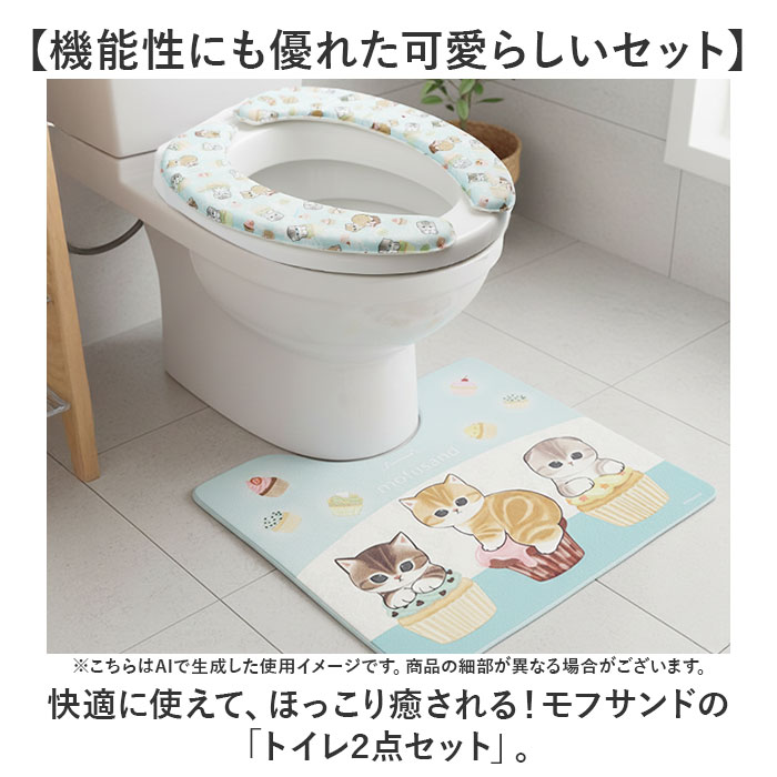 | 商品説明 | 【機能性にも優れた可愛らしいセット】快適に使えて、ほっこり癒される!モフサンドの「トイレ2点セット」。【愛らしくシュールなモフサンド】モフサンドのキュートな絵柄&温かみのあるカラー。トイレを彩るアクセントに☆≪PVCトイレマット≫【サッと拭くだけ!お洗濯いらず】水気に強い塩ビ素材。飛び散り汚れもひと拭きでキレイになり、ほこりも出ずお掃除ラクラク。【マットを清潔な状態でキープ】抗菌効果で雑菌の繁殖を抑制。さらに防カビ効果で、カビの発生や繁殖を抑える!【安全に使える防炎性もプラス】万が一着火した際も燃え広がりを抑える、燃えにくい素材。【クッション性があり踏み心地柔らか】程よい厚みとクッション性。もっちりソフトな質感で、優しく受け止めてくれる◎【ズレにくく、プチストレスを軽減】裏面には滑りにくいよう、エンボス加工を。気になるズレを抑えて快適。≪さらふわ便座クッション≫【まるでソファのような座り心地】程よい厚みのクッションタイプ。長時間座っていても、お尻が痛くなりにくい◎【置くだけでピタッと簡単装着】裏面の透明フィルムをはがし、便座に装着。面倒な手間不要で、便座を持ち上げてもズレない!【色んなタイプの便座に対応】・U型、O型、洗浄・暖房型どのタイプの便座にも使用可能。引っ越しの際も買い替えいらず。【電源オフでも暖かい便座に】ひんやり便座も、このクッションを取り付けるだけであったか。節電にもなるエコアイテム!【丸洗いできて繰り返し使用OK】汚れが気になったら、ネットに入れて洗濯機へ。いつも清潔をキープ&繰り返し使えて経済的。(※)洗濯機の弱モードをご使用ください。 |