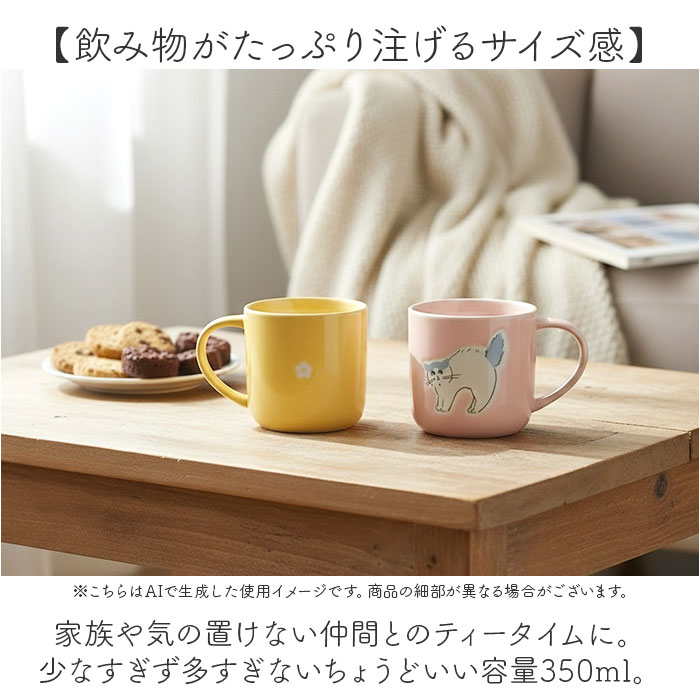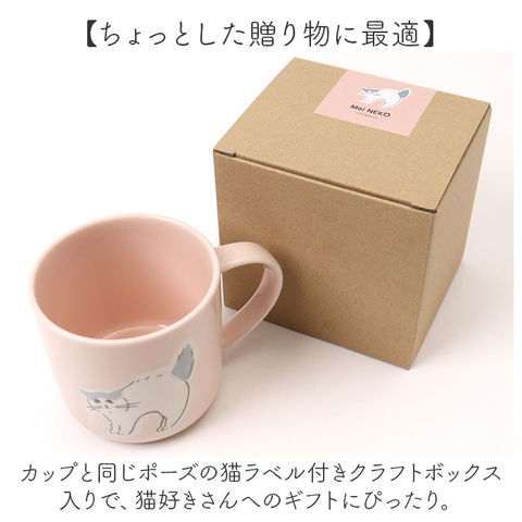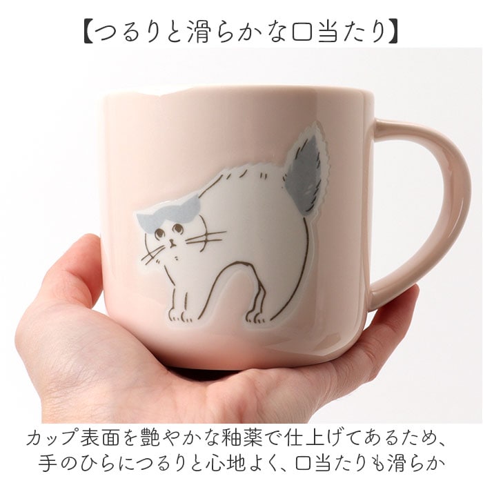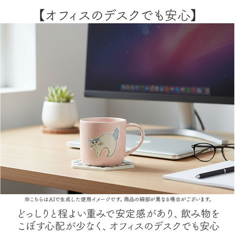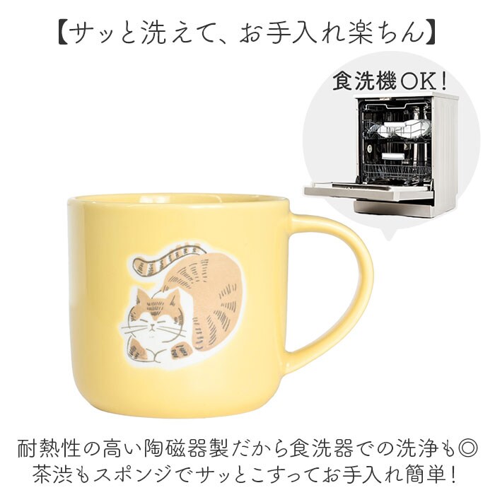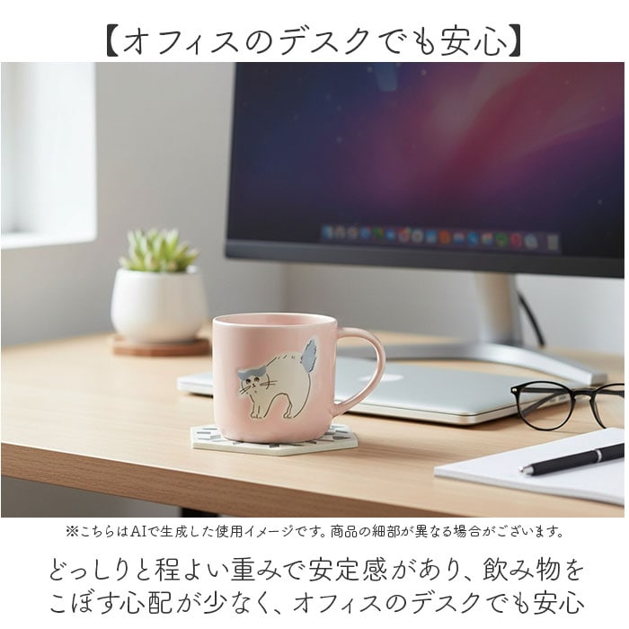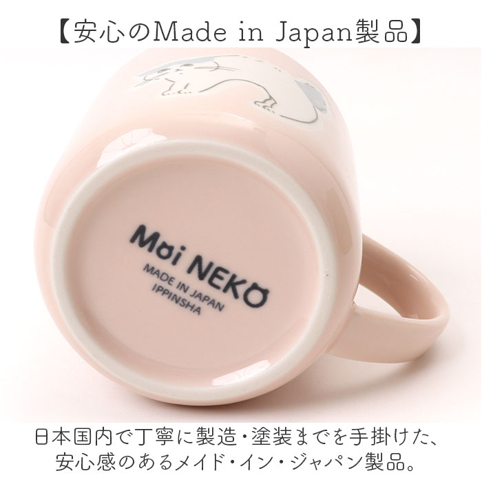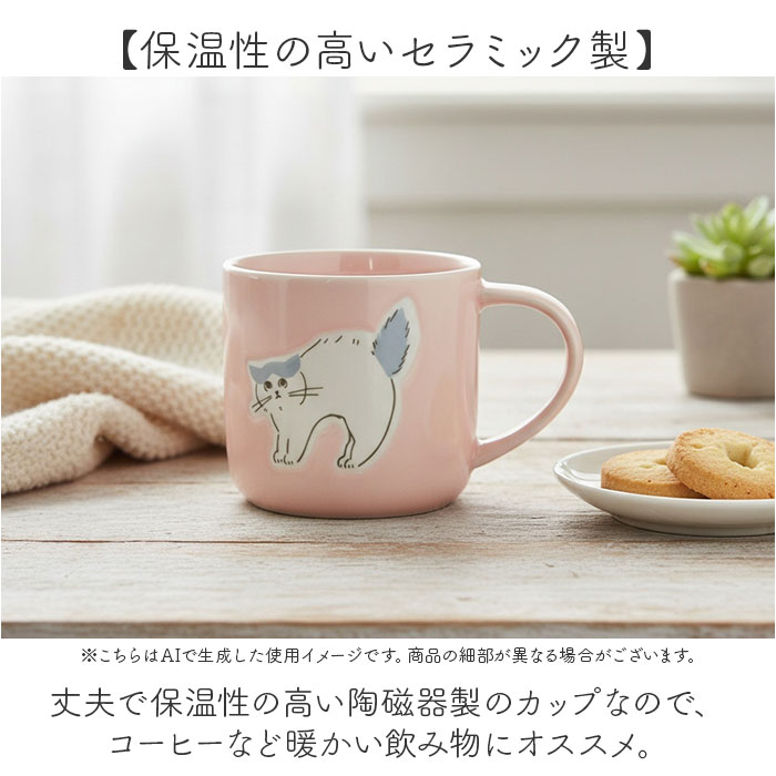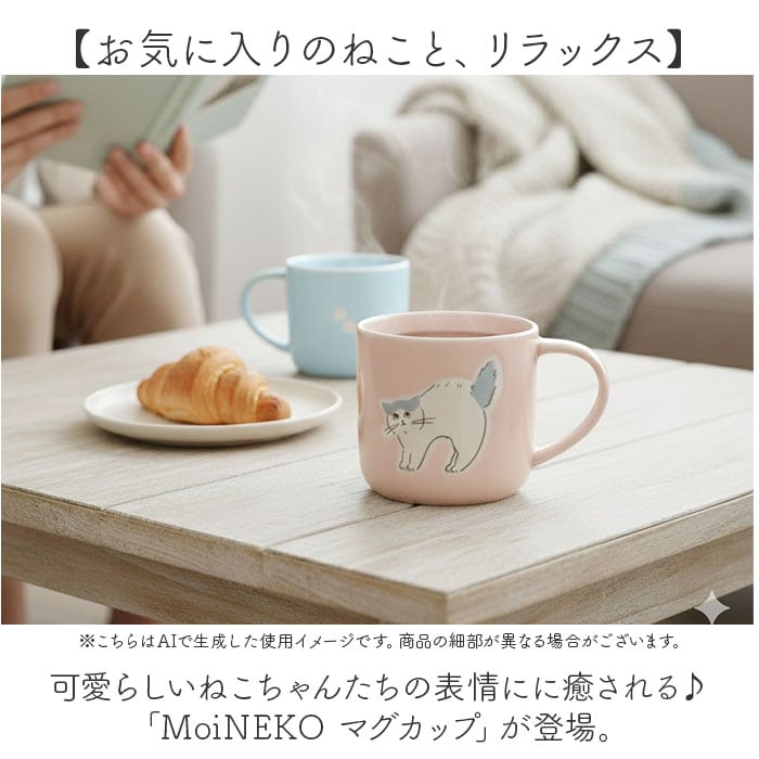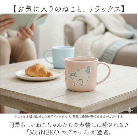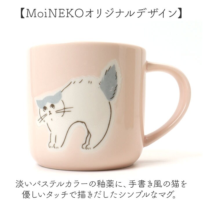 | 商品説明 | 【お気に入りのねこと、リラックス】可愛らしいねこちゃんたちの表情にに癒される♪「MoiNEKO マグカップ」が登場。【MoiNEKOオリジナルデザイン】淡いパステルカラーの釉薬に、手書き風の猫を優しいタッチで描きだしたシンプルなマグ。【保温性の高いセラミック製】丈夫で保温性の高い陶磁器製のカップなので、コーヒーなど暖かい飲み物にオススメ。【つるりと滑らかな口当たり】カップ表面を艶やかな釉薬で仕上げてあるため、手のひらにつるりと心地よく、口当たりも滑らか【電子レンジでの温めOK!】飲み物が冷めてしまったら、電子レンジでいつでも温めなおせるのが嬉しいポイント。【サッと洗えて、お手入れ楽ちん】耐熱性の高い陶磁器製だから食洗器での洗浄も◎茶渋もスポンジでサッとこすってお手入れ簡単!【飲み物がたっぷり注げるサイズ感】家族や気の置けない仲間とのティータイムに。少なすぎず多すぎないちょうどいい容量350ml。【オフィスのデスクでも安心】どっしりと程よい重みで安定感があり、飲み物をこぼす心配が少なく、オフィスのデスクでも安心【安心のMade in Japan製品】日本国内で丁寧に製造・塗装までを手掛けた、安心感のあるメイド・イン・ジャパン製品。【ちょっとした贈り物に最適】カップと同じポーズの猫ラベル付きクラフトボックス入りで、猫好きさんへのギフトにぴったり。【どのねこちゃんがお気に入り?】さまざまな表情のネコちゃん達に癒される♪イラストの反対側にはかわいいワンポイント付き!(※)カラーによりワンポイントのデザインが異なります。 |