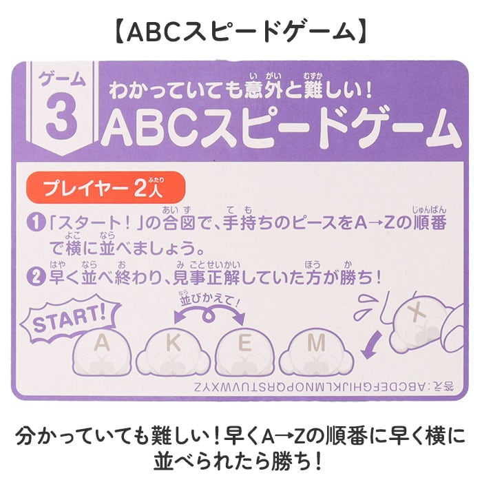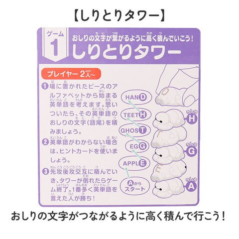 | 商品説明 | 【ベイマックスで楽しく英語学習】かわいいキャラクターと遊べるバランス系知育おもちゃ♪【3種類のゲーム搭載】 しりとりやおしり文字当てなど多彩な3つのゲームで楽しく知育◎【しりとりタワー】おしりの文字がつながるように高く積んで行こう!【おしり文字当てタワー】日本語を英語に変換した、ベイマックスをタワーにしよう!【ABCスピードゲーム】分かっていても難しい!早くA→Zの順番に早く横に並べられたら勝ち!【AからZまでの文字入り】 すべてのピースにアルファベットA~Zが記されており語彙力アップ〇【キュートな表情は3種類】 ベイマックスのピースの表情は3種類あり可愛くてコレクションにも最適♪ |