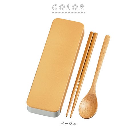 木目スライド スプーン&箸セット 18cm【ベージュ】