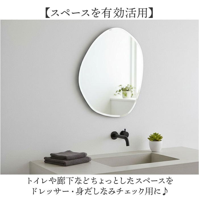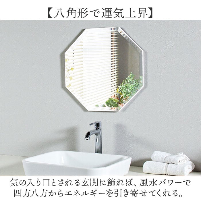 商品説明【お洒落なノンフレームミラー】シンプルで落ち着いたデザインの「MOMENT壁掛けミラー」【インテリアに溶け込む】ノンフレームだからお部屋の家具にも合わせやすく、どんな空間にも馴染む〇【八角形で運気上昇】気の入り口とされる玄関に飾れば、風水パワーで四方八方からエネルギーを引き寄せてくれる。【空間に奥行きを演出】玄関やお部屋に鏡を掛けると空間が広がり、広く感じさせてくれる効果も♪【スペースを有効活用】トイレや廊下などちょっとしたスペースをドレッサー・身だしなみチェック用に♪【壁掛けタイプ】壁掛け用ビス等に引っ掛けるだけで簡単設置。※市販の壁掛け用金具をご使用の上、金具が抜けにくくきちんと固定できる場所に飾ってください。