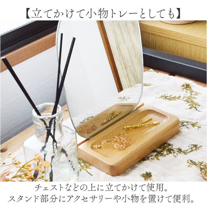 | 商品説明 | 【お出掛け前の身だしなみチェックに】場所を選ばず置けるコンパクトサイズ。「MOMENT ウッドスタンドミラー」。【空間に馴染むナチュラルな風合い】シンプルなミラーと木製スタンドが素敵にマッチ。温かみがあり、お部屋の雰囲気を邪魔しない◎【立てかけて小物トレーとしても】チェストなどの上に立てかけて使用。スタンド部分にアクセサリーや小物を置けて便利。【安心して立てかけできる保護シール】スタンドの四隅に、付属の保護シールを。滑りや傷つきをガードできて安心。【壁掛けもできる2wayタイプ】ミラーの背面には壁掛け用パーツを装備。スペースの限られた玄関でも、空間を有効活用。【新生活に合わせて小物を新調】新しい生活のお供に、家具などと一緒に新調して気分もアップ!韓国風インテリアとも相性抜群☆ |