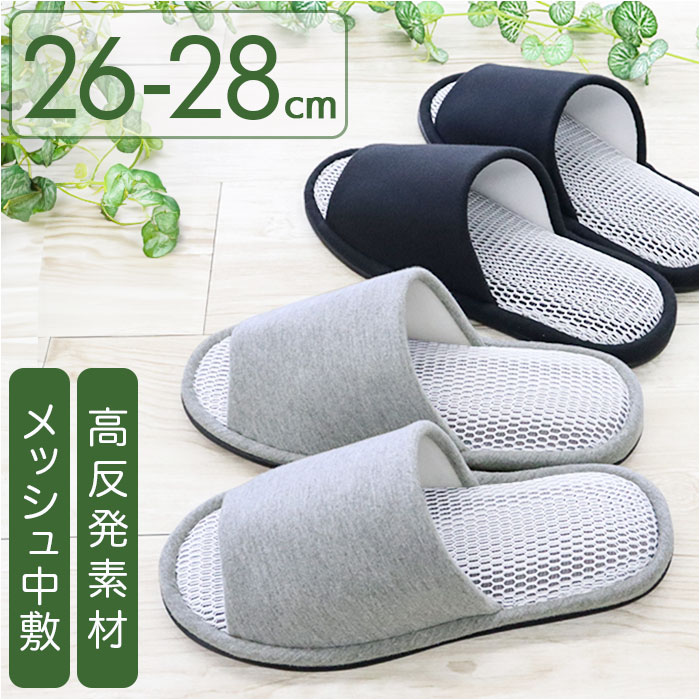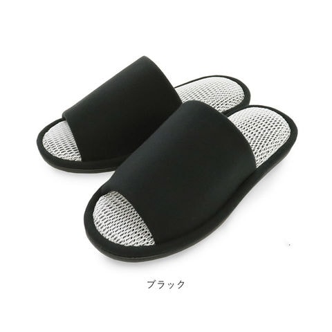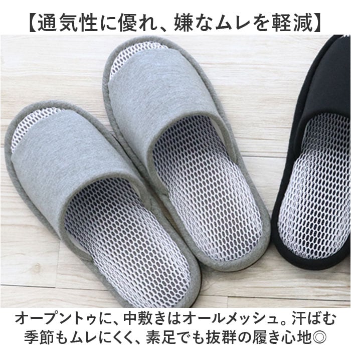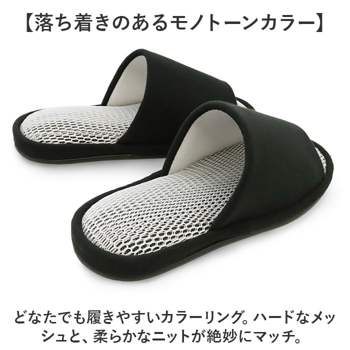 ハリのある弾力さらさらモノトーンメッシュ スリッパ【ブラック】【26~28cm】