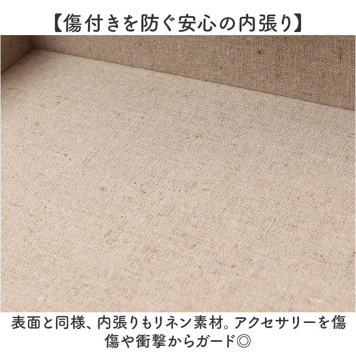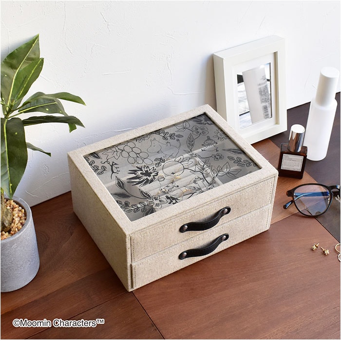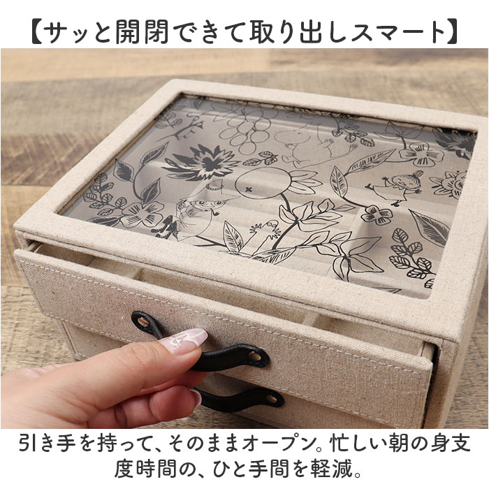 | 商品説明 | 【大切なアクセサリーをすっきり整頓】おしゃれに保管できる!キャラクターデザインの「ジュエリーボックス」が新登場。【空間に馴染むナチュラルデザイン】優しい風合いのリネンに、合皮の引き手がアクセント。インテリアに素敵にマッチ。【癒やしのムーミンキャラクター】上部は中身が見えるクリアカラーに、可愛らしいムーミンの仲間たちをプリント☆【サッと開閉できて取り出しスマート】引き手を持って、そのままオープン。忙しい朝の身支度時間の、ひと手間を軽減。【間仕切り付きで中身が一目瞭然】上段にはリング収納スロットと、イヤリングやミニブローチが入るフリースペース。【腕時計や大ぶりアイテムをIN】下段は仕切りのない構造。バングルや腕時計などもざっくり収納。【傷付きを防ぐ安心の内張り】表面と同様、内張りもリネン素材。アクセサリーを傷傷や衝撃からガード◎【大切な方へのギフトにもおすすめ】キャラクターが主張しすぎず、長く愛用できる大人可愛いデザイン!贈り物にも最適。【収納スペース】上段:リングスロット×6、フリースペース×5 |