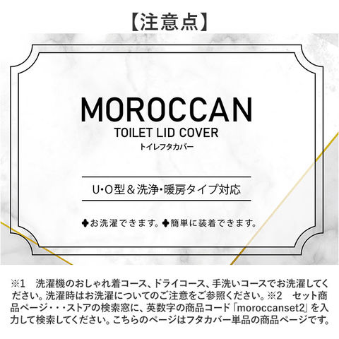 | 商品説明 | 【いつもの場所に高級感をプラス】くすみカラーとモロッカン柄でサニタリールームに高級感をプラス。兼用フタカバーが登場♪【洗浄・暖房どちらもOK】装着は粘着シールをペタッと貼るだけ!買い間違いをせず、引っ越しなどで買い直しもナシ◎【U・O型タイプにも対応】フタのフチに沿うように粘着シールを貼ればU・O型タイプにも対応!【ふわふわな触り心地♪】ボリュームあるパイル地を使用し、ふわふわな触り心地が魅力的。【汚れが気になったら洗濯機に】汚れが気になったらそのまま洗濯機で丸洗いができるのも嬉しいポイント。※1【セットで使うのもオススメ♪】上品なデザインがかわいい「モロッカン」シリーズ。別ページにてセット販売中※2【注意点】※1 洗濯機のおしゃれ着コース、ドライコース、手洗いコースでお洗濯してください。洗濯時はお洗濯についてのご注意をご参照ください。※2 セット商品ページ・・・ストアの検索窓に、英数字の商品コード「moroccanset2」を入力して検索してください。こちらのページはフタカバー単品の商品ページです。 |