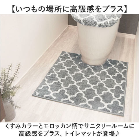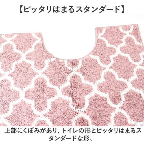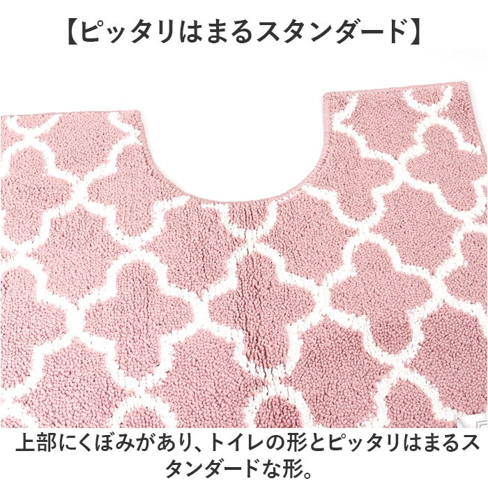 | 商品説明 | 【いつもの場所に高級感をプラス】くすみカラーとモロッカン柄でサニタリールームに高級感をプラス。トイレマットが登場♪【ピッタリはまるスタンダード】上部にくぼみがあり、トイレの形とピッタリはまるスタンダードな形。【ふわふわな触り心地♪】ボリュームあるパイル地を使用し、ふわふわな触り心地が魅力的。【汚れが気になったら洗濯機に】汚れが気になったらそのままネットに入れて洗濯機で丸洗いができるのも嬉しいポイント。※1【ズレにくい滑り止め付き】トイレマットの裏面は滑り止め加工がされており、ズレにくい仕上がり。【セットで使うのもオススメ♪】上品なデザインがかわいい「モロッカン」シリーズ。別ページにてセット販売中※2【注意点】※1 洗濯機のおしゃれ着コース、ドライコース、手洗いコースかつ洗濯ネットに入れてお洗濯してください。ドラム式洗濯機でのお洗濯はできません。洗濯時はお洗濯についてのご注意をご参照ください。※2 セット商品ページ・・・ストアの検索窓に、英数字の商品コード「moroccanset2」を入力して検索してください。こちらのページはトイレマット単品の商品ページです。 |