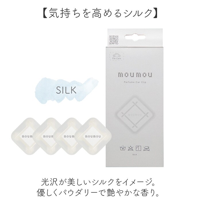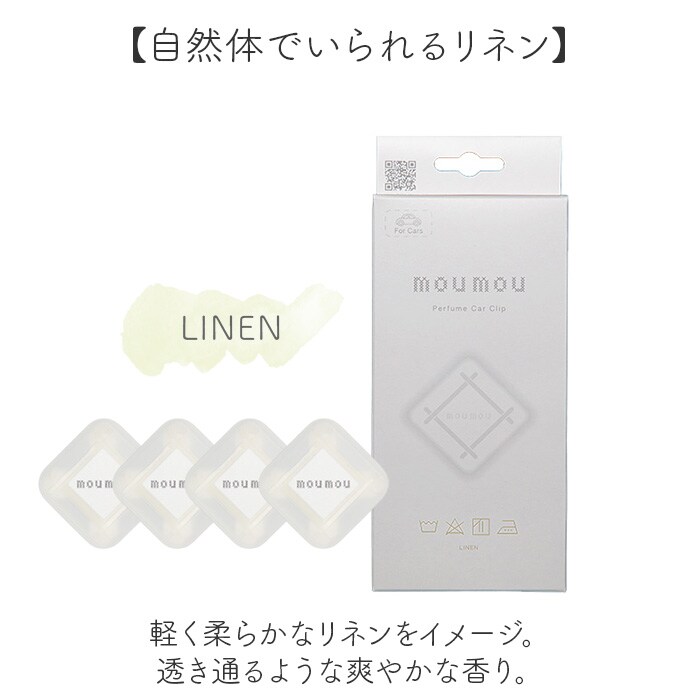 | 商品説明 | 【香りを風に乗せて、心地よい空間に】車内でも自宅でも、お気に入りの香りを。moumou パフュームカークリップ 4個セット。【手軽に使えるクリップタイプ】車のエアコン送風口のフィンや、サーキュレーターにクリップを差し込むだけ。安心の日本製◎【優しい香りがふわっと広がる】シートには香料を染み込ませてあるので、エアコンなどの風と共に、ふんわり香る♪【気持ちが整うコットン】やわらかく包み込むコットンをイメージ。温もりのある清らかな香り。【気持ちを高めるシルク】光沢が美しいシルクをイメージ。優しくパウダリーで艶やかな香り。【自然体でいられるリネン】軽く柔らかなリネンをイメージ。透き通るような爽やかな香り。【ふんわりホッとするウール】柔らかな肌触りのウールをイメージ。暖かく包み込むような香り。【moumou-ムームー-】日々の暮らしの中で身近な存在のファブリック。代表的な天然の素材を香りで表現。 |