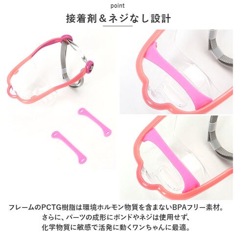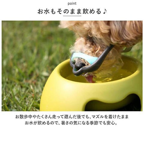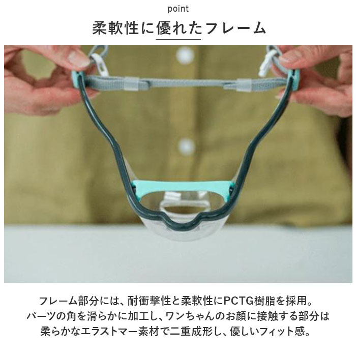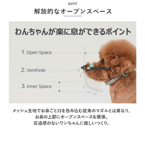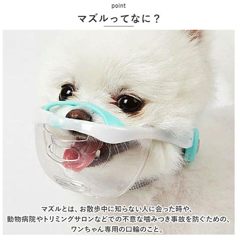 | 商品説明 | 愛犬の誤飲防止やお散歩中の急な噛みつき対策に!ワンちゃんが息苦しくならない「ドッグ用マズル MouthFit-マウス-フィット-」が新登場。【マズルってなに?】マズルとは、お散歩中に知らない人に会った時や、動物病院やトリミングサロンなどでの不意な噛みつき事故を防ぐための、ワンちゃん専用の口輪のこと。【シンプルなクリアデザイン】ワンちゃんのお顔の表情がひと目でわかる、フェイスガードのようにオシャレに着けられるクリアマスクデザイン。【解放的なオープンスペース】メッシュ生地でお鼻ごと口を包み込む従来のマズルとは異なり、お鼻の上部にオープンスペースを確保。圧迫感のないワンちゃんに優しいつくり。【息がラクラク快適】マズルの前面には5つの通気口を設け、たくさん歩くワンちゃんでも呼吸がラクラク。呼気の熱がこもらないからお散歩中も快適。【お水もそのまま飲める♪】お散歩中やたくさん走って遊んだ後でも、マズルを着けたままお水が飲めるので、暑さの気になる季節でも安心。【4か所固定でしっかり安定】メガネのテンプルのようなフレームと鼻ストラップ、上下2本のベルトストラップの4点でマズルを立体的に固定し、外れにくい安全構造。【柔軟性に優れたフレーム】フレーム部分には、耐衝撃性と柔軟性にPCTG樹脂を採用。パーツの角を滑らかに加工し、ワンちゃんのお顔に接触する部分は柔らかなエラストマー素材で二重成形し、優しいフィット感。【調節できる鼻ストラップ】2種類の鼻ストラップと曲線方向を入れ替えることで、お鼻の高さの合わせてマスクスペースを調節することが可能。【選べる2サイズ】お鼻の高さが5.0cm~7.5cm程度のトイプードルやビションフリーゼ等の犬種にはLサイズ(Appleタイプ)、お鼻の高さが2.5cm~5.5cm程度のマルチーズ・ポメラ二アンにはSサイズ(Berryタイプ)がオススメ。【愛犬との大切な時間のために】見た目にも窮屈さを感じさせないクリアマスクに、愛犬の毛色に似合うくすみカラーのフレームを合わせたスタイリッシュなデザイン。愛犬とのお散歩やお出掛けがのびのび楽しめる強い味方! |