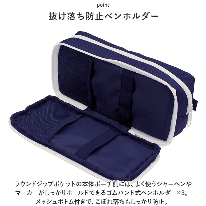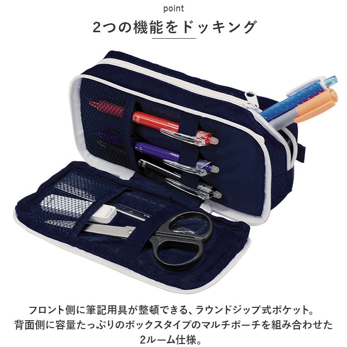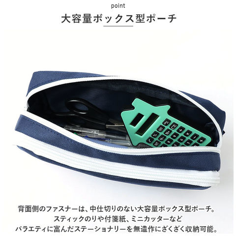| 商品説明 | きちんと整理できる便利さと、たっぷりの収納力をひとつに!シンプルでマルチに使える「CUBIX ボックス型ペンケース」が新登場。【2つの機能をドッキング】フロント側に筆記用具が整頓できる、ラウンドジップ式ポケット。背面側に容量たっぷりのボックスタイプのマルチポーチを組み合わせた2ルーム仕様。【大きな文房具もきちんと整理】ダブルファスナーでパカッと開くラウンドジップポケットには、手前側フラップにハサミや定規など大きめの文房具がしまえるゴムバンド付きポケットを配置。【抜け落ち防止ペンホルダー】ラウンドジップポケットの本体ポーチ側には、よく使うシャーペンやマーカーがしっかりホールドできるゴムバンド式ペンホルダー×3。メッシュボトム付きで、こぼれ落ちもしっかり防止。【大容量ボックス型ポーチ】背面側のファスナーは、中仕切りのない大容量ボックス型ポーチ。スティックのりや付箋紙、ミニカッターなどバラエティに富んだステーショナリーを無造作にざくざく収納可能。【ガジェットケースにもオススメ】ポーチの前後の生地にはクッション材を内蔵しているので、スマホやモバイルバッテリーなど、電子機器をまとめるガジェットポーチとしても大活躍!【使いやすいシンプルカラー】パステルカラー&ベーシックカラーのポリエステルキャンバスに、「CUBIX」のロゴパッチが控えめに配置した、オフィスでもプライベートでも使いやすいデザイン。パステルタイプはコスメポーチにしても可愛い♪ |