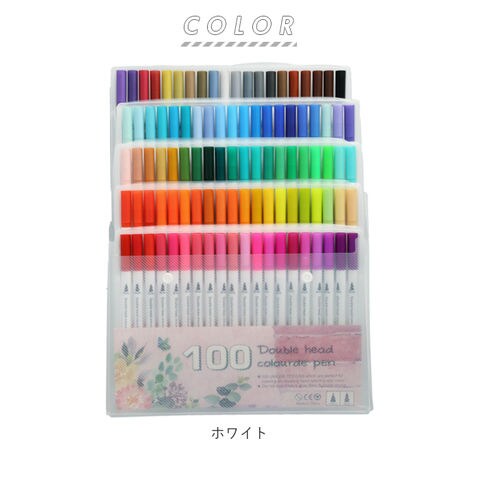 | 商品名 | 100色 マーカーペン 水性インク 太字 細字 2種類ペン先 mps100 |