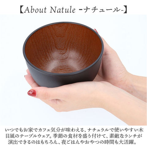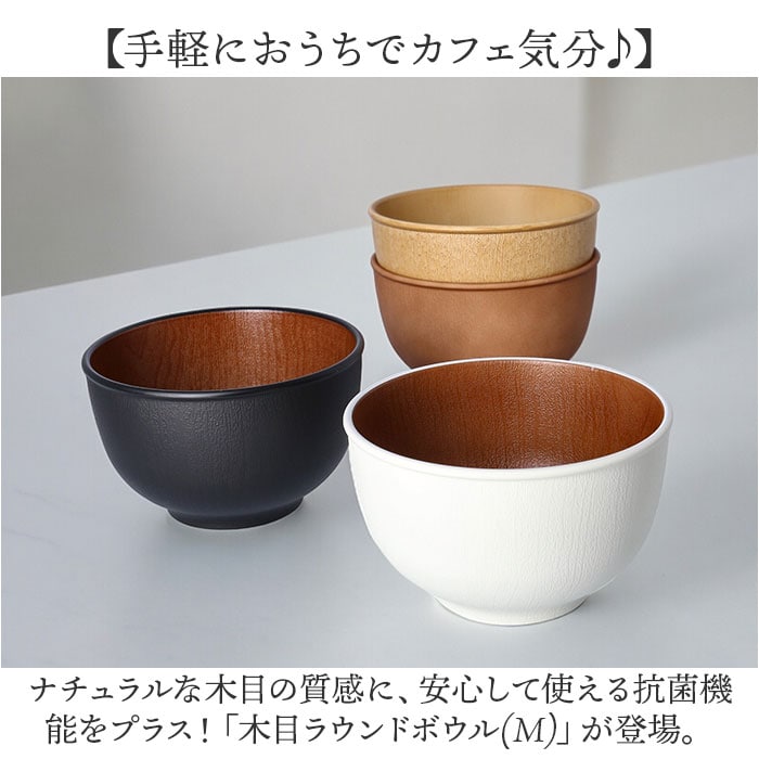 | 商品説明 | 【手軽におうちでカフェ気分♪】ナチュラルな木目の質感に、安心して使える抗菌機能をプラス!「木目ラウンドボウル(M)」が登場。【いつものお料理が素敵に映える】グリーンサラダから具だくさんスープまで使い方いろいろ。マルチに使えるお洒落な木目調ボウル。【カフェ風ランチを手軽に実現】ごはんもおかずもたっぷり盛れる深さ約7cm!ボリューム満点の丼メニューや麺類もおまかせ!【いつでも清潔、安心の抗菌加工】銀イオンの抗菌力が細菌の増殖を抑制!JIS Z 2801抗菌性試験をクリアした安心清潔な抗菌仕様。【電子レンジ・食洗器の使用OK!】ボウルの素地は耐熱温度140度のPET・ABS樹脂素材。電子レンジでの温め直しや食洗機にも対応!【軽くて、丈夫で、割れにくい。】ふわっと軽く持ち運べて、落としても割れにくい丈夫さも魅力。キャンプやアウトドアでも大活躍。【スタッキングで省スペース】同じサイズのボウルを積み重ねてすっきりと収納可能。食器棚でも場所を取らずに省スペース♪【伝統が息づく、安心の日本製品】温かみのある木目調の塗装は、樹脂製の素地に石川県加賀市・山中温泉地区に伝わる塗装技法「山中塗り」を施したもの。安心のMade in Japan製品。【About Natule ーナチュール-】いつでもお家でカフェ気分が味わえる、ナチュラルで使いやすい木目風のテーブルウェア。季節の食材を盛り付けて、素敵なランチが演出できるのはもちろん、夜ごはんやおやつの時間も大活躍。 |