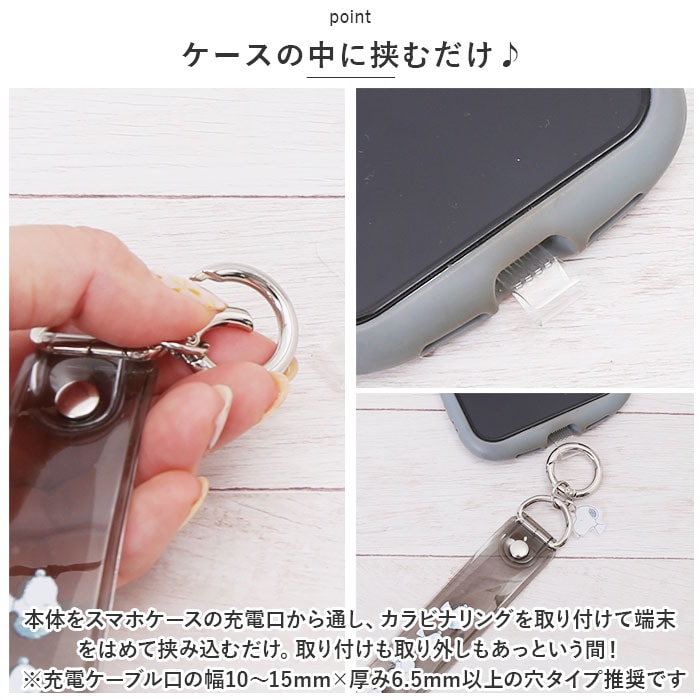 | 商品説明 | マルチホルダーやハンドストラップとして使える!マルチリングプラスに、クリアハンドストラップセットが仲間入り♪(対象年齢15歳以上)【ケースの中に挟むだけ♪】本体をスマホケースの充電口から通し、カラビナリングを取り付けて端末をはめて挟み込むだけ。取り付けも取り外しもあっという間!(※充電ケーブル口の幅10~15mm×厚み6.5mm以上の穴タイプ推奨です。)【持ちやすく落ちにくい!】カラビナリングに指を通すことで、スマホの持ちやすさが向上!うっかり手が滑って、スマホが落下する危険も防げちゃう◎【持ち歩きラクラク】リング部分を持ち手代わりにしたり、カバンやボトムスのベルトループに取り付け。シーンに合わせて使い方を選べるマルチタイプ。【便利なハンドストラップ】手首に通して、スマホをファッショナブルに持つことができる☆移動時の落下防止にも!【スマホ以外にも使い方いろいろ】マスクやメガネ、鍵やイヤホンケースなどを取り付けてもOK。【コーデのワンポイントに】柔らかなPVC製のクリア仕様。キャラクターデザインのストラップに、存在感のあるリボンをプラス♪ |