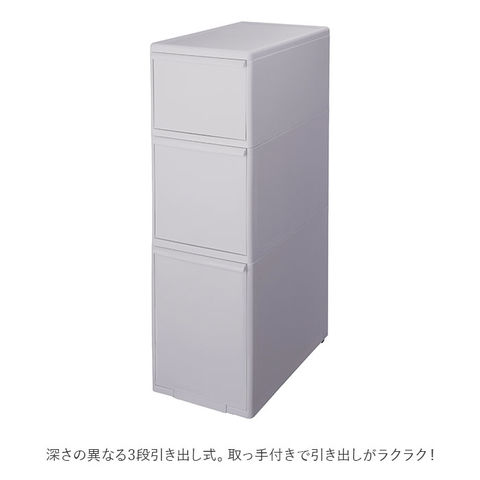 | 容量 | 【引出し内寸 】 [上段]横・22cm/奥行・43cm/高さ・16cm [中段]横・22cm/奥行・43cm/高さ・23cm [上段]横・22cm/奥行・41cm/高さ・31cm |