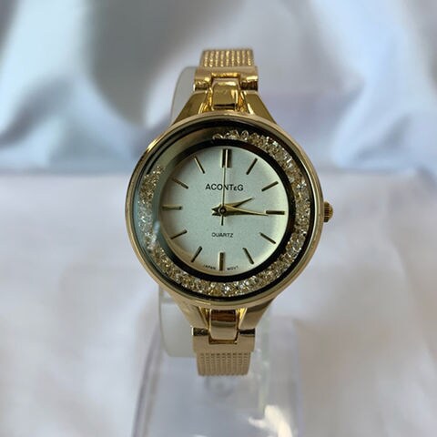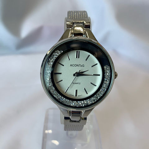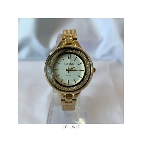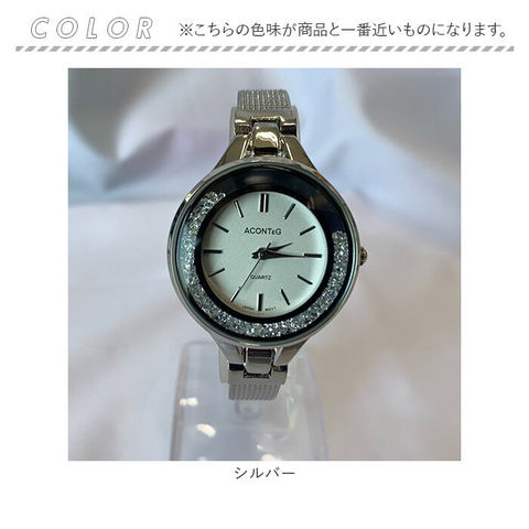 | 商品説明 | 腕を動かすとキラキラストーンがぐるぐる回るバングル時計。文字盤をシンプルにすることでよりキラキラを強調。同じようなキラキラストーンのアクセサリーと一緒がオススメ。 |