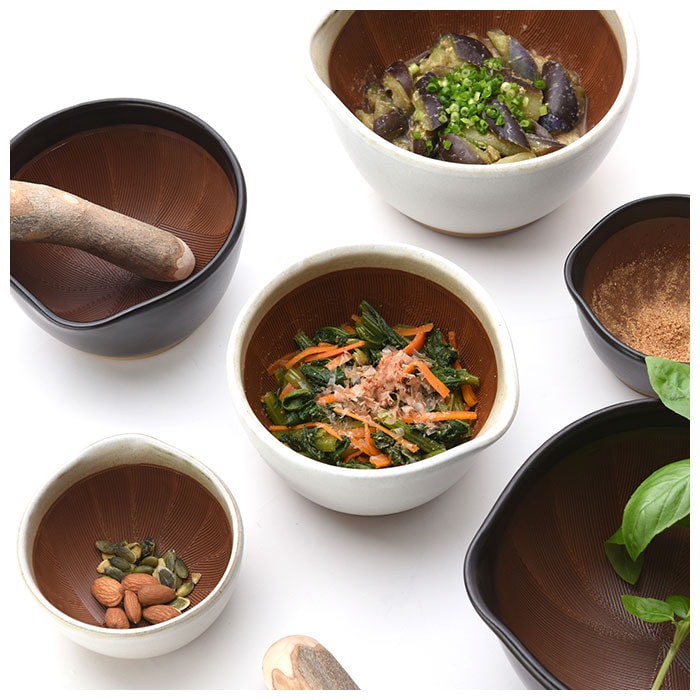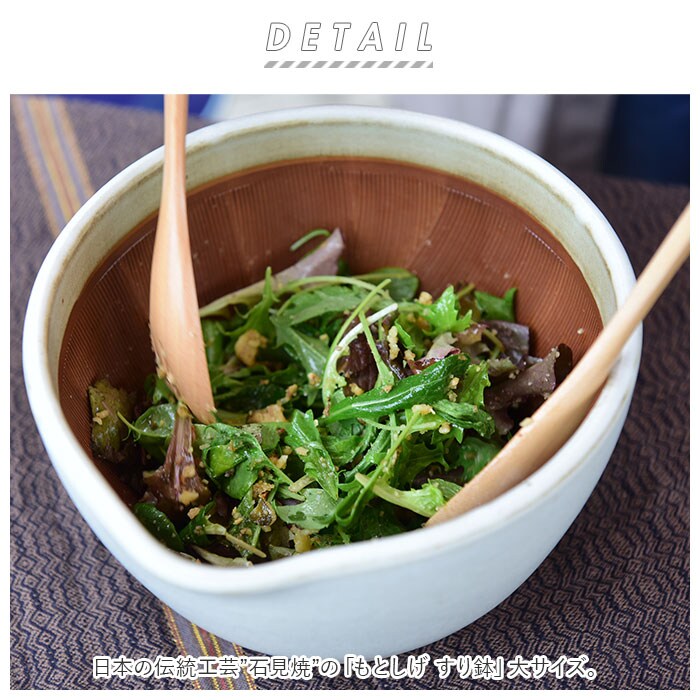 | 商品説明 | 日本の伝統工芸”石見焼”の「もとしげ すり鉢」大サイズ。耐水性・耐酸性・耐アルカリ性に優れ、塩害や凍害にも強い!1300度以上の高温で焼き上げるので、とっても丈夫。食材が中心に集まり、外に飛び出しにくい形状。・1つ1つ手作業でつけられた”くし目”が食材をしっかりと捉え、すり時間を軽減。底面にはシリコン製の滑り止め付きで安定感ばっちり。テーブルを傷つける心配も不要。そのまま食卓に出せる、おしゃれなデザイン◎食材をすったりつぶしたり、ドレッシングや離乳食作りでも大活躍。口付きで直接注ぎやすいのもポイント。朴の木 すりこぎ 10号(商品コード:hsurikogil10)とのセット使いがおすすめ。(※当店別ページにて販売中です。)小サイズ(商品コード:msuribachis)、中サイズ(商品コード:msuribachim)とスタッキングOK。サイズ違いで揃えれば、用途に合わせて使い分けできて便利!(※どちらも当店別ページにて販売中です。) |
