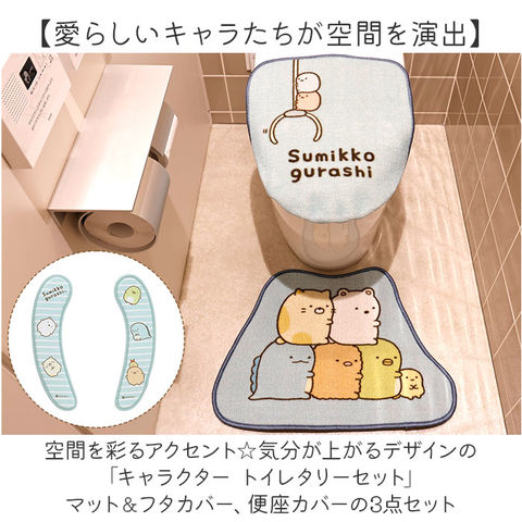 | 商品説明 | 【愛らしいキャラたちが空間を演出】空間を彩るアクセント☆気分が上がるデザインの「キャラクター トイレタリーセット」マット&フタカバー、便座カバーの3点セット【トイレマット】程よいサイズ感と短い毛足のトイレマット。柔らかな質感が、足裏を優しく受け止める◎【ズレにくく、プチストレスを軽減】裏面には滑りにくい加工済み。気になるズレを抑えて快適。【兼用フタカバー】様々な便座に対応するフタカバー。【取り付け簡単】カバーをフタにかぶせたら両サイドの透明フィルムをはがして固定するだけ!【便座カバー】やみつきになるサラッと柔らかな肌触り◎キャラクターデザインでほっこり癒される【ふかふかの座り心地】程よい厚みのクッションタイプ。長時間座っていても、お尻が痛くなりにくい◎【置くだけでピタッと簡単装着】裏面の透明フィルムをはがし、便座に装着。面倒な手間不要で、便座を持ち上げてもズレない!【色んなタイプの便座に対応】・U型、O型、洗浄・暖房型どのタイプの便座にも使用可能。引っ越しの際も買い替えいらず。※クッション便座の厚みが約10mmありますので、便器のフタがきちんと閉まらない場合があります。【あったか快適】ひんやり便座も、このクッションを取り付けるだけで温もりを感じられる。節電にも◎【丸洗いできて繰り返し使用OK】汚れが気になったら、ネットに入れて洗濯機へ。いつも清潔をキープ&繰り返し使えて経済的。※洗濯機の弱モードor手洗いモードで単独洗いしてください。ドラム式洗濯機は機種によりご使用いただけない場合がございます。【殺風景なトイレを華やかに演出】シンプルな空間がパッと明るく!お気に入りのキャラクターで素敵にコーディネート♪ |