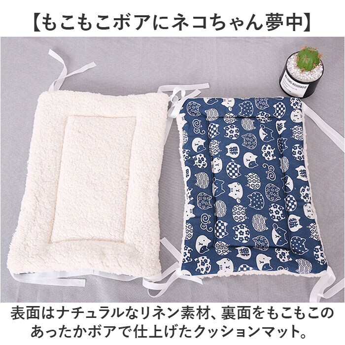 | 商品説明 | 【フローリングの上でもほっこり暖か】肌寒い季節も、ペットがコロンと転がって快適に過ごせる♪「リバーシブル・ふわふわペットマット」【もこもこボアにネコちゃん夢中】表面はナチュラルなリネン素材、裏面をもこもこのあったかボアで仕上げたクッションマット。【季節に合わせてリバーシブル】サラリとしたリネン面は春夏、もこもこボア面は秋冬シーズンに。季節に合わせて使分けが可能。【ペットケージに最適サイズ】ケージの内側に四隅の紐をキュッと結んで簡単固定!猫ちゃんがぴょんと飛び乗ってもズレずに快適。【どこでもくつろぎスペースに】約50cm×35cmの程よいサイズ感で、ソファや床の上にふわっと広げれば、どこでも寛ぎスペースに。【ご家庭でカンタンお洗濯】取り扱いの楽なポリエステルボア素材なので、ご家庭でザブザブ洗えて、いつでも清潔な使い心地。※手洗いでのお手入れをお奨めしますが、洗濯機をご使用の場合は、必ず洗濯ネットに入れてください。【エキゾチックアニマルにも対応】ワンちゃんネコちゃんの寝床にはもちろん、フェレットやチンチラなど小動物用マットにもお勧め。【さまざまなシーンで大活躍】パタパタと折りたためば持ち運び楽ちん。ペットとのドライブやアウトドアを楽しむ時にも大活躍! |