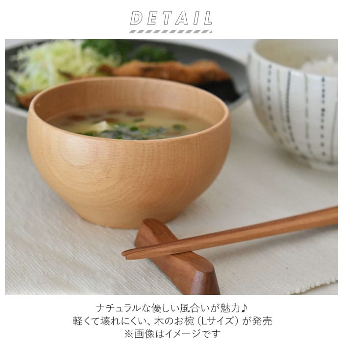 | 商品説明 | ナチュラルな優しい風合いが魅力♪軽くて壊れにくい、木のお椀(Lサイズ)が発売。天然木の質感を活かしつつ表面にウレタン塗装を施し、マットな質感に仕上げた温かみのあるお椀。表面を塗装することで、汚れや水分から保護し耐久性を高めてくれる◎特別なメンテナンスは必要なし!漬け置きせず、使用後はなるべく早く優しく洗うことで、長く使えるのが嬉しい。思わず手で包み込みたくなるような、丸みのあるかたち♪和食器・洋食器問わず組み合わせOK。汎用性の高いデザイン◎小ぶりなサイズ感で汁物はもちろん、副菜を入れる小鉢やデザートボウルとしても活躍。(※天然素材を使用し手作業で研磨仕上げしているため、形や色目が異なります。) |